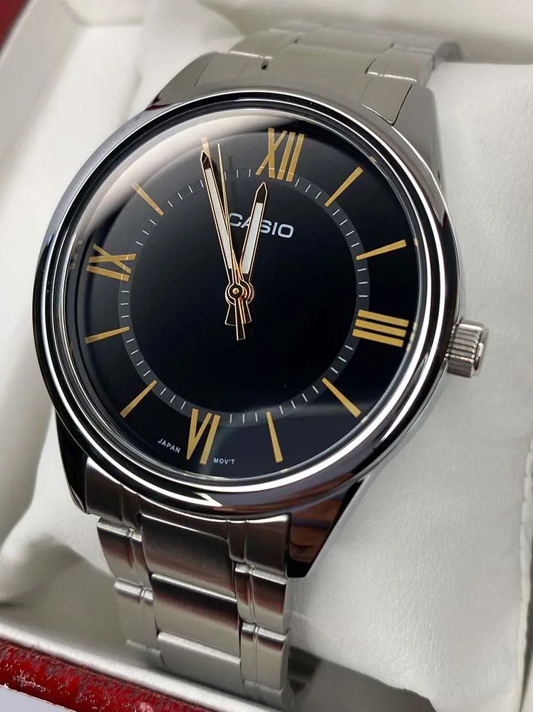 Мужские наручные часы Casio Collection MTP-V005D-1B5. Точный кварцевый механизм с аналоговой индикацией. Корпус изготовлен из высококачественной нержавеющей стали 316L с высокими антикоррозийными свойствами. На стрелки и отметки нанесен светонакопительный состав, благодаря этому считывать информацию с циферблата возможно и в темноте. Аккумулятор обеспечивает часы достаточным питанием приблизительно на 3 года. Браслет из нержавеющей стали. Прочное, устойчивое к царапинам минеральное стекло защищает часы от повреждений. Часы являются водонепроницаемыми до 3 Бар. Цвет корпуса: Серебристый. Цвет циферблата: Черный. Гарантия: 2 года.