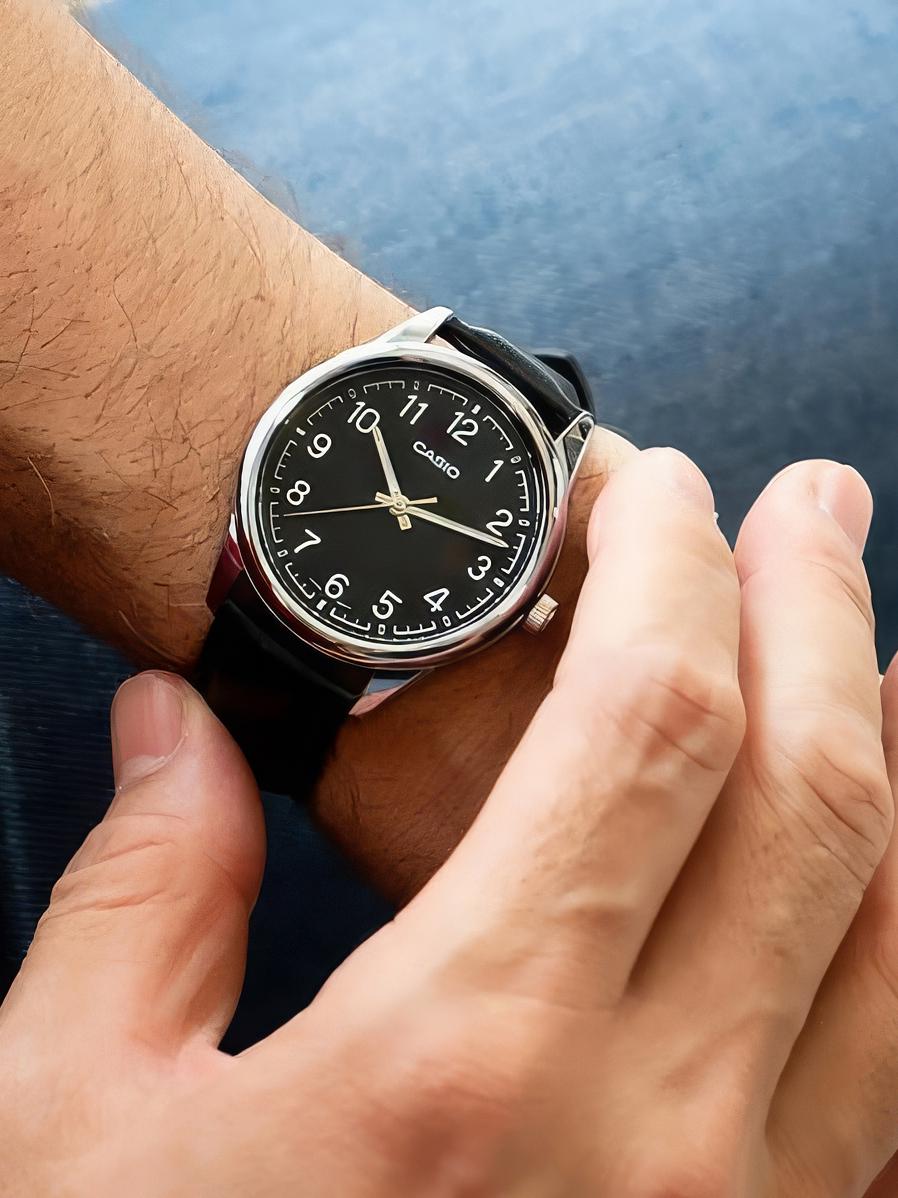 Мужские наручные часы Casio Collection MTP-V005L-1B4. Точный кварцевый механизм с аналоговой индикацией. Корпус изготовлен из высококачественной нержавеющей стали 316L с высокими антикоррозийными свойствами. На стрелки и отметки нанесен светонакопительный состав, благодаря этому считывать информацию с циферблата возможно и в темноте. Аккумулятор обеспечивает часы достаточным питанием приблизительно на 3 года. Ремешок изготовлен из кожи. Прочное, устойчивое к царапинам минеральное стекло защищает часы от повреждений. Часы являются водонепроницаемыми до 3 Бар. Цвет корпуса: Серебристый. Цвет циферблата: Черный. Гарантия: 2 года.