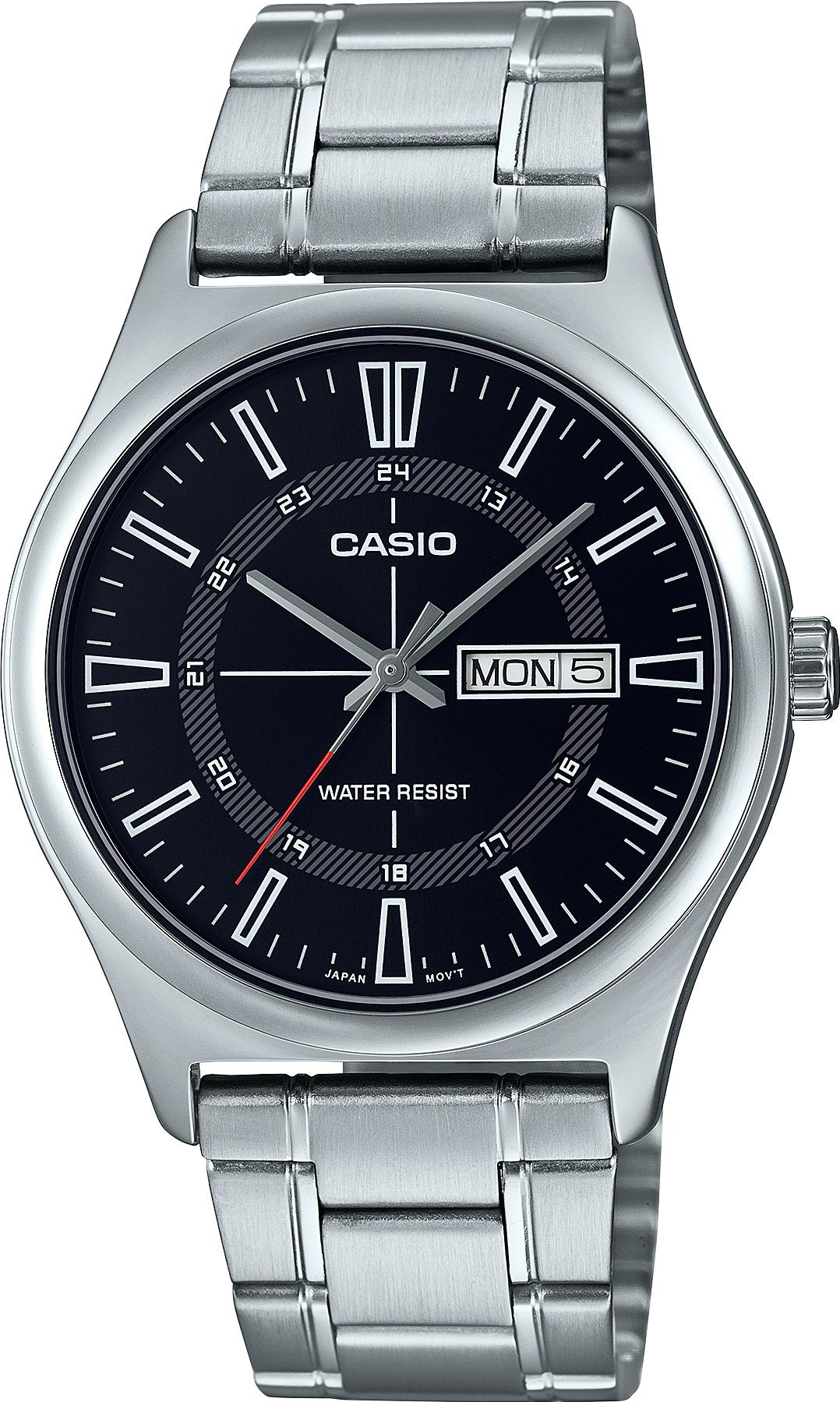 Мужские наручные часы Casio Collection MTP-V006D-1C. Точный кварцевый механизм с аналоговой индикацией. Браслет из нержавеющей стали. Аккумулятор обеспечивает часы достаточным питанием приблизительно на 2 года. Браслет из нержавеющей стали. Прочное, устойчивое к царапинам минеральное стекло защищает часы от повреждений. На циферблате отображается текущее число месяца и день недели. Часы являются водонепроницаемыми до 3 Бар. Цвет циферблата: Серебристый. Цвет корпуса: Черный. Толщина: 9 мм. Гарантия: 2 года.