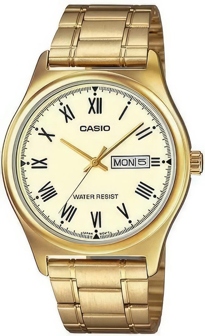 Мужские наручные часы Casio Collection MTP-V006G-9B. Точный кварцевый механизм с аналоговой индикацией. Корпус изготовлен из высококачественной нержавеющей стали 316L с высокими антикоррозийными свойствами. На циферблате отображается текущее число месяца и день недели. Браслет из нержавеющей стали. Прочное, устойчивое к царапинам минеральное стекло защищает часы от повреждений. Часы являются водонепроницаемыми до 3 Бар. Цвет циферблата: Золотистый. Ширина (с заводной головкой): 45мм. Толщина: 9мм. Гарантия: 2 года.