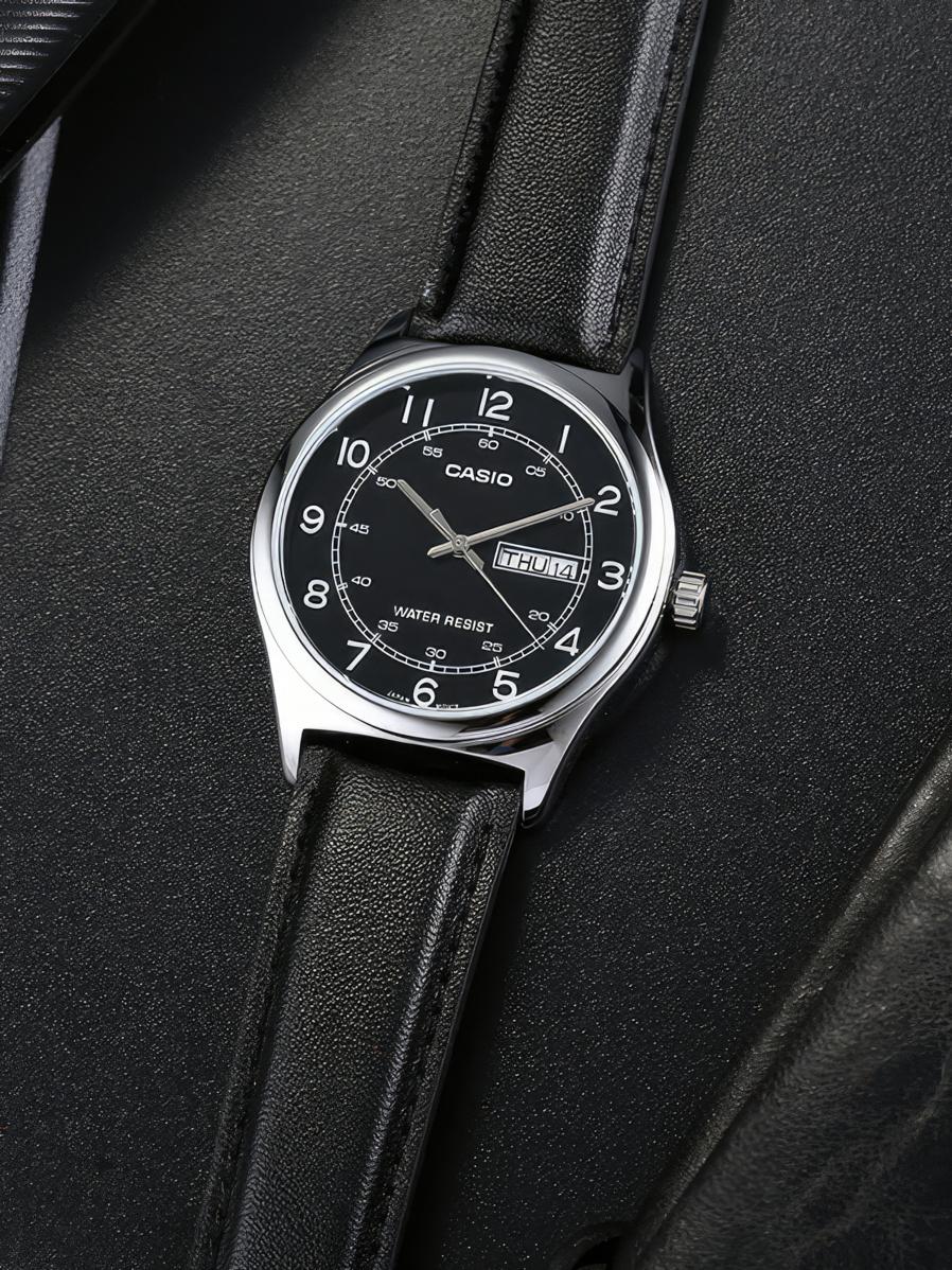 Мужские наручные часы Casio Collection MTP-V006L-1B2. Точный кварцевый механизм с аналоговой индикацией. Корпус изготовлен из высококачественной нержавеющей стали 316L с высокими антикоррозийными свойствами. На циферблате отображается текущее число месяца и день недели. Ремешок изготовлен из кожи. Прочное, устойчивое к царапинам минеральное стекло защищает часы от повреждений. Часы являются водонепроницаемыми до 3 Бар. Цвет корпуса: Серебристый. Цвет циферблата: Черный. Ширина (с заводной головкой): 38мм. Толщина: 9мм. Гарантия: 2 года.