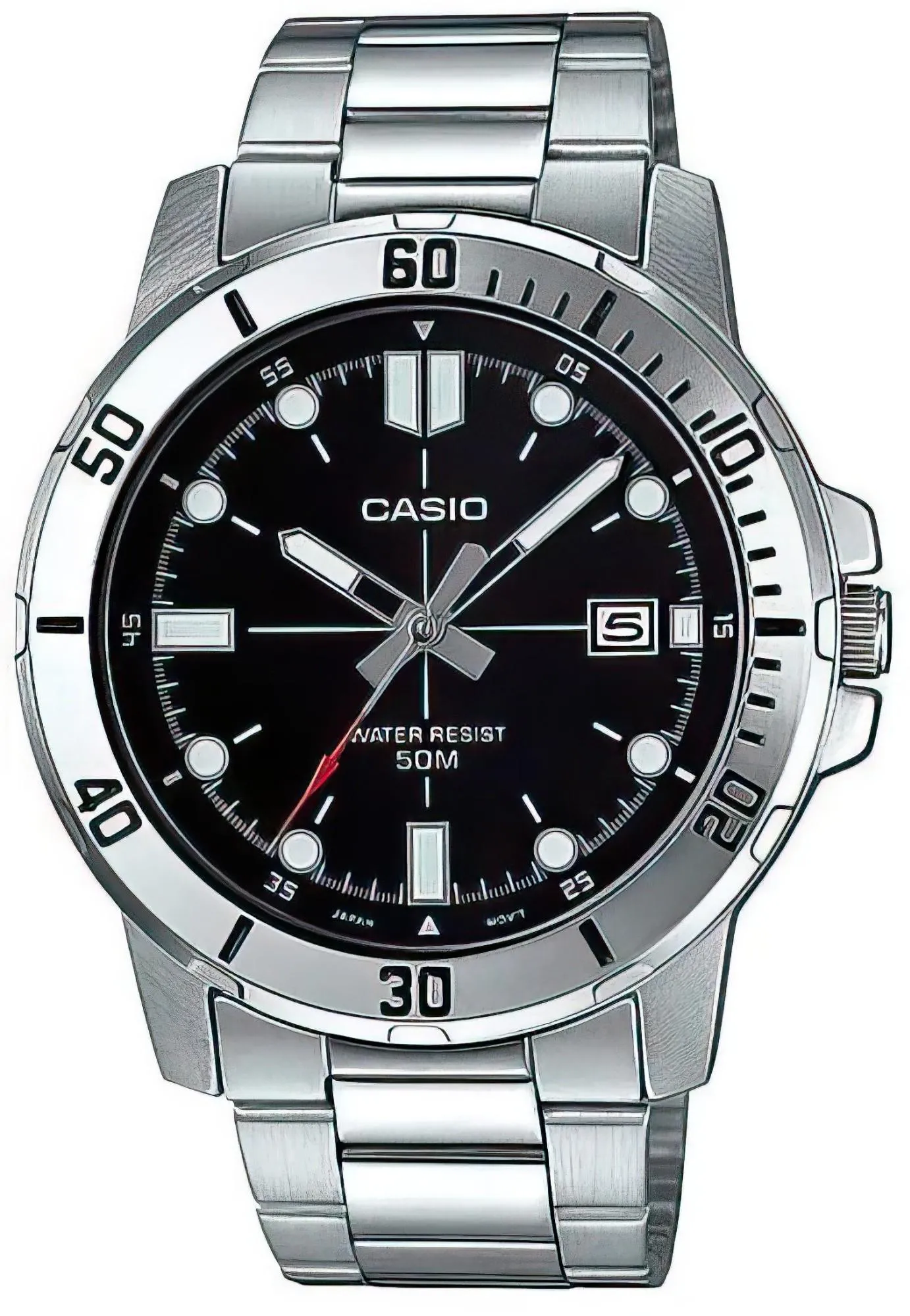 Мужские часы в универсальном стиле. Доступная цена. Круглый металлический корпус и стальной браслет. Безель с гравированной разметкой. Минеральное стекло. Водозащита 5 АТМ. Японский кварцевый механизм.
