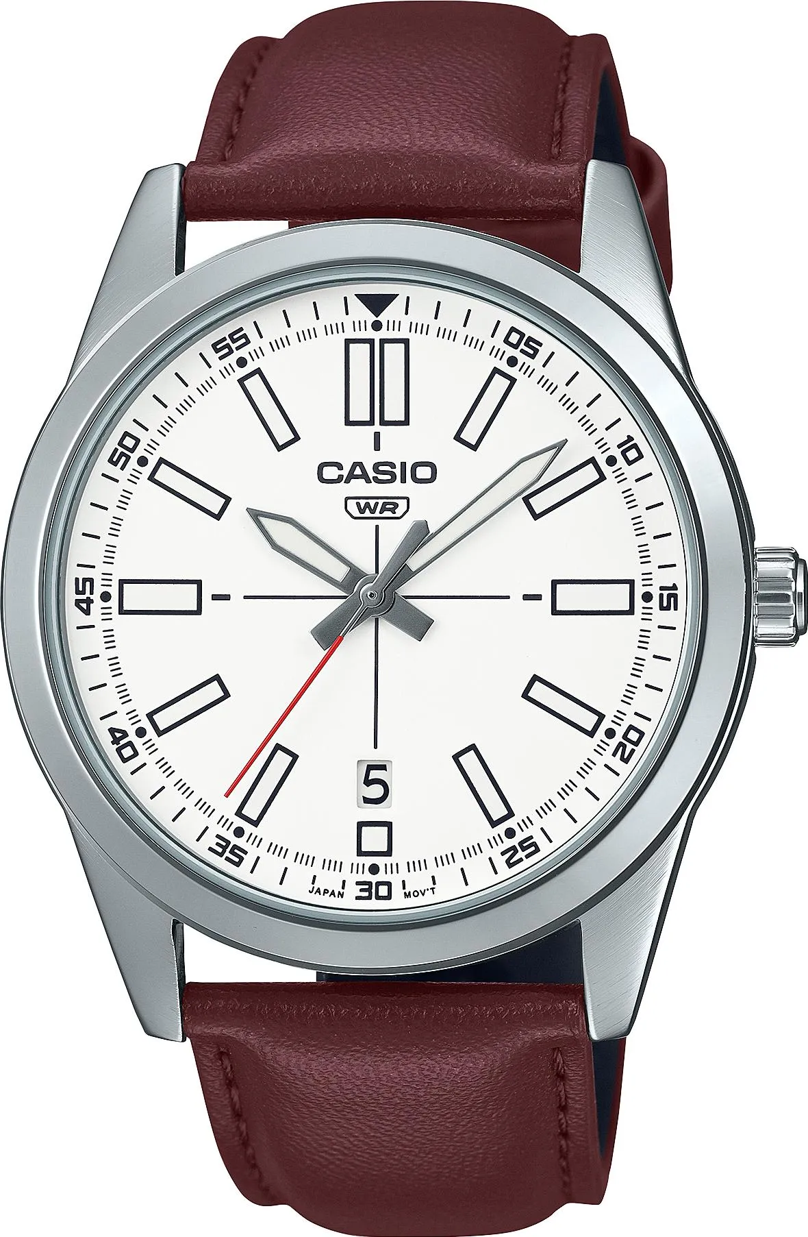 Мужские наручные часы Casio Collection MTP-VD02L-7E. Точный кварцевый механизм с аналоговой индикацией. Корпус изготовлен из высококачественной нержавеющей стали 316L с высокими антикоррозийными свойствами. На стрелки и отметки нанесен светонакопительный состав, благодаря этому считывать информацию с циферблата возможно и в темноте. На циферблате отображается текущее число месяца. Аккумулятор обеспечивает часы достаточным питанием приблизительно на 3 года. Ремешок изготовлен из кожи. Прочное, устойчивое к царапинам минеральное стекло защищает часы от повреждений. Часы являются водонепроницаемыми до 3 Бар. Цвет корпуса: Серебристый. Цвет циферблата: Белый. Ширина (с заводной головкой): 41мм. Толщина: 10мм. Гарантия: 2 года.