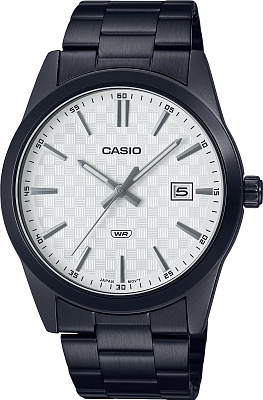 Мужские наручные часы Casio Collection MTP-VD03B-7A. Точный кварцевый механизм с аналоговой индикацией. Браслет из нержавеющей стали. Аккумулятор обеспечивает часы достаточным питанием приблизительно на 3 года. Браслет из нержавеющей стали. Прочное, устойчивое к царапинам минеральное стекло защищает часы от повреждений. На циферблате отображается текущее число месяца. Часы являются водонепроницаемыми до 3 Бар. Цвет циферблата: Черный. Цвет корпуса: Белый. На стрелки и отметки нанесен светонакопительный состав, благодаря этому считывать информацию с циферблата возможно и в темноте. Толщина: 10 мм. Гарантия: 2 года.