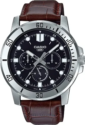 Мужские наручные часы Casio Collection MTP-VD300GL-1E. Точный кварцевый механизм с аналоговой индикацией. Корпус изготовлен из высококачественной нержавеющей стали 316L с высокими антикоррозийными свойствами. На стрелки и отметки нанесен светонакопительный состав, благодаря этому считывать информацию с циферблата возможно и в темноте. На циферблате отображается текущее число месяца и день недели. Ремешок изготовлен из кожи. Прочное, устойчивое к царапинам минеральное стекло защищает часы от повреждений. Часы являются водонепроницаемыми до 3 Бар. Цвет корпуса: Желтое золото. Цвет циферблата: Черный. Гарантия: 2 года.