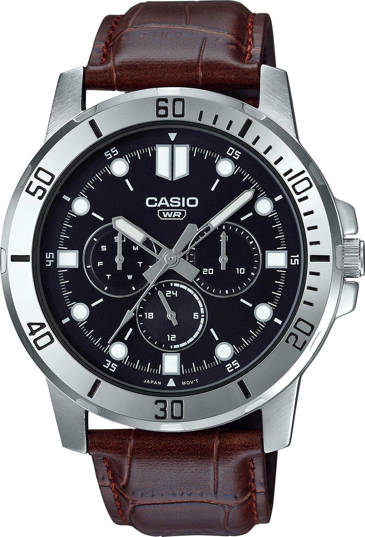 Мужские наручные часы Casio Collection MTP-VD300L-1E. Точный кварцевый механизм с аналоговой индикацией. Корпус изготовлен из высококачественной нержавеющей стали 316L с высокими антикоррозийными свойствами. На стрелки и отметки нанесен светонакопительный состав, благодаря этому считывать информацию с циферблата возможно и в темноте. На циферблате отображается текущее число месяца и день недели. Ремешок изготовлен из кожи. Прочное, устойчивое к царапинам минеральное стекло защищает часы от повреждений. Часы являются водонепроницаемыми до 5 Бар. Цвет корпуса: Серебристый. Ширина (с заводной головкой): 42мм. Толщина: 10мм. Гарантия: 2 года.