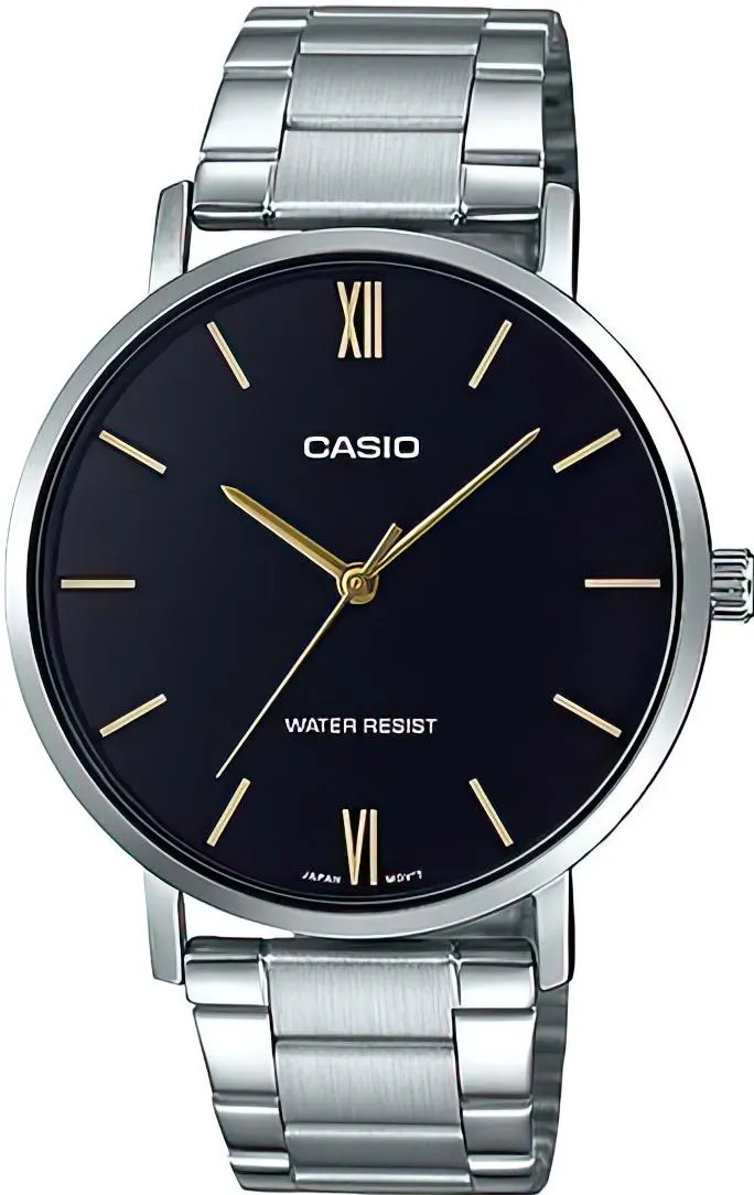 Мужские наручные часы Casio Collection MTP-VT01D-1B. Точный кварцевый механизм с аналоговой индикацией. Корпус изготовлен из высококачественной нержавеющей стали 316L с высокими антикоррозийными свойствами. Браслет из нержавеющей стали. Прочное, устойчивое к царапинам минеральное стекло защищает часы от повреждений. Часы являются водонепроницаемыми до 3 Бар. Цвет корпуса: Серебристый. Ширина (с заводной головкой): 46мм. Толщина: 8мм. Гарантия: 2 года.