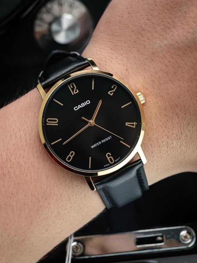 Мужские наручные часы Casio Collection MTP-VT01GL-1B2. Точный кварцевый механизм с аналоговой индикацией. Корпус изготовлен из высококачественной нержавеющей стали 316L с высокими антикоррозийными свойствами. Ремешок изготовлен из кожи. Прочное, устойчивое к царапинам минеральное стекло защищает часы от повреждений. Часы являются водонепроницаемыми до 3 Бар. Ширина (с заводной головкой): 46мм. Толщина: 8мм. Гарантия: 2 года.