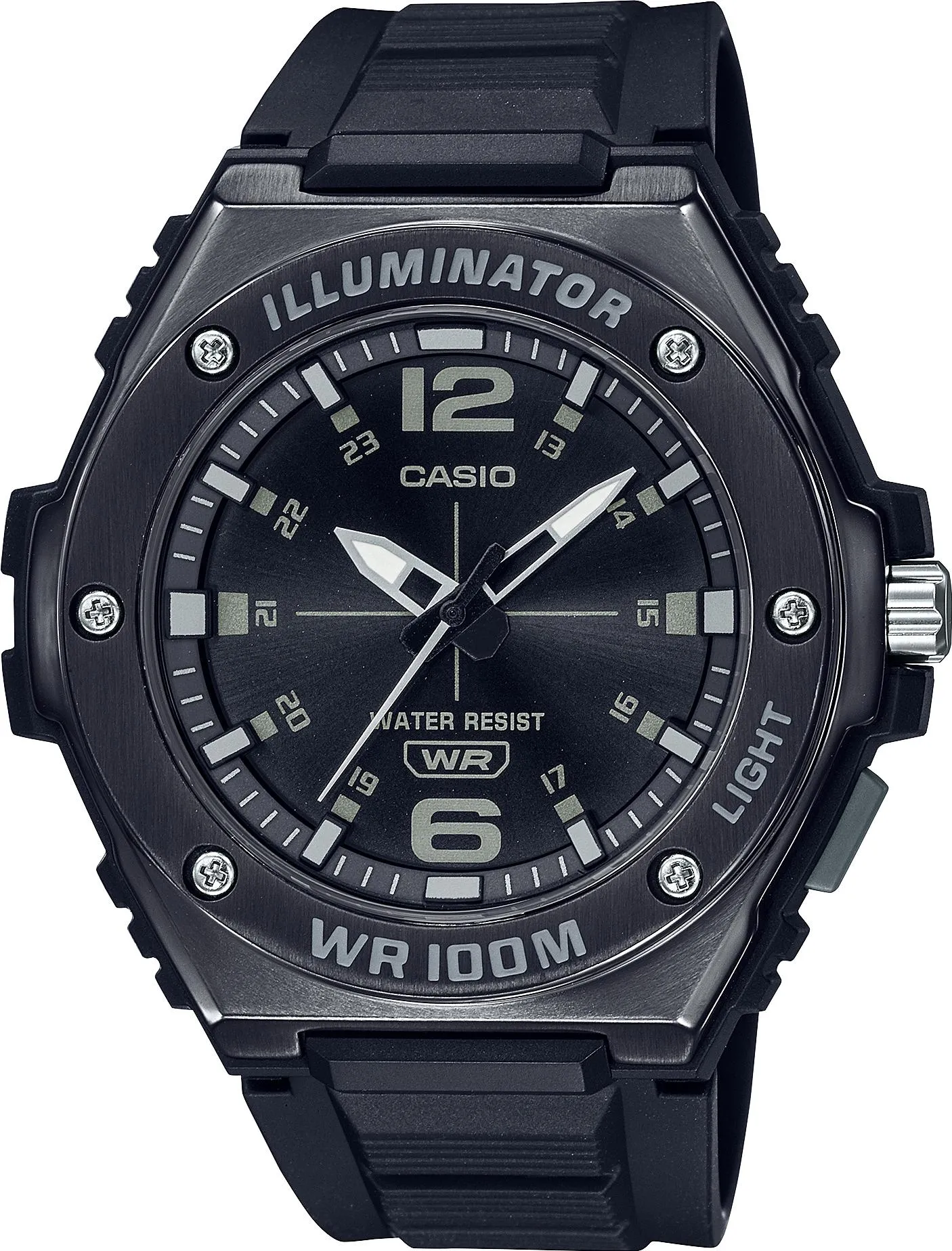 Мужские наручные часы Casio Collection MWA-100HB-1A. Точный кварцевый механизм с аналоговой индикацией. Корпус изготовлен из высококачественной нержавеющей стали 316L с высокими антикоррозийными свойствами. На стрелки и отметки нанесен светонакопительный состав, благодаря этому считывать информацию с циферблата возможно и в темноте. Полимерный ремешок. Натуральный полимерный материал является идеальным для изготовления ремешка благодаря своей чрезвычайной прочности и гибкости. Органическое стекло. Часы являются водонепроницаемыми до 10 Бар. Цвет корпуса: Черный. Цвет циферблата: Черный. Ширина (с заводной головкой): 50мм. Толщина: 13мм. Гарантия: 2 года. Другие наименования модели: MWA-100HB-1AVEF.