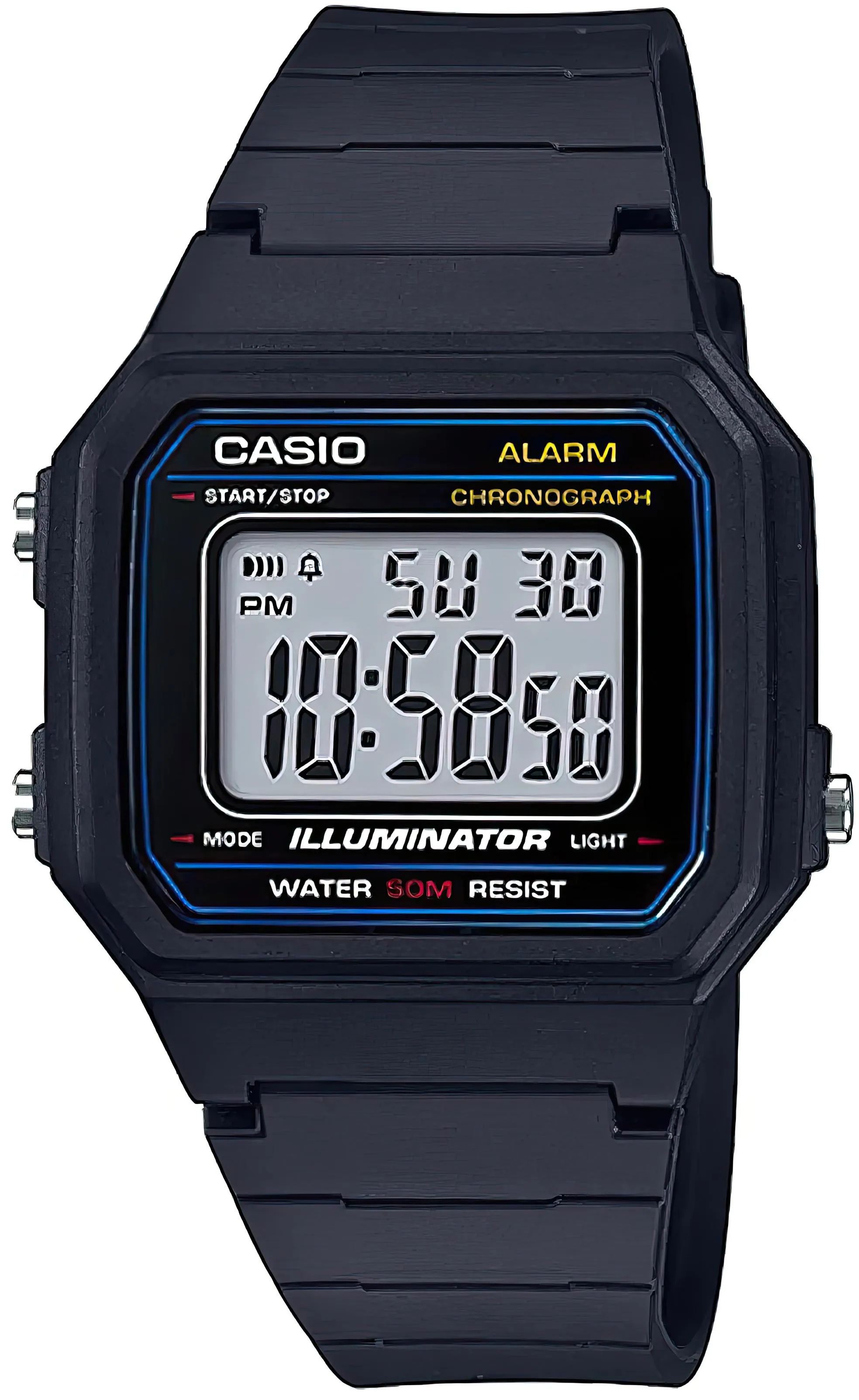 Наручные часы в стиле первых электронных моделей, предназначенные для мужчин и женщин. Пластиковый корпус и полимерный ремешок. Многофункциональный кварцевый механизм с цифровой индикацией и подсветкой, батарейка на 7 лет.