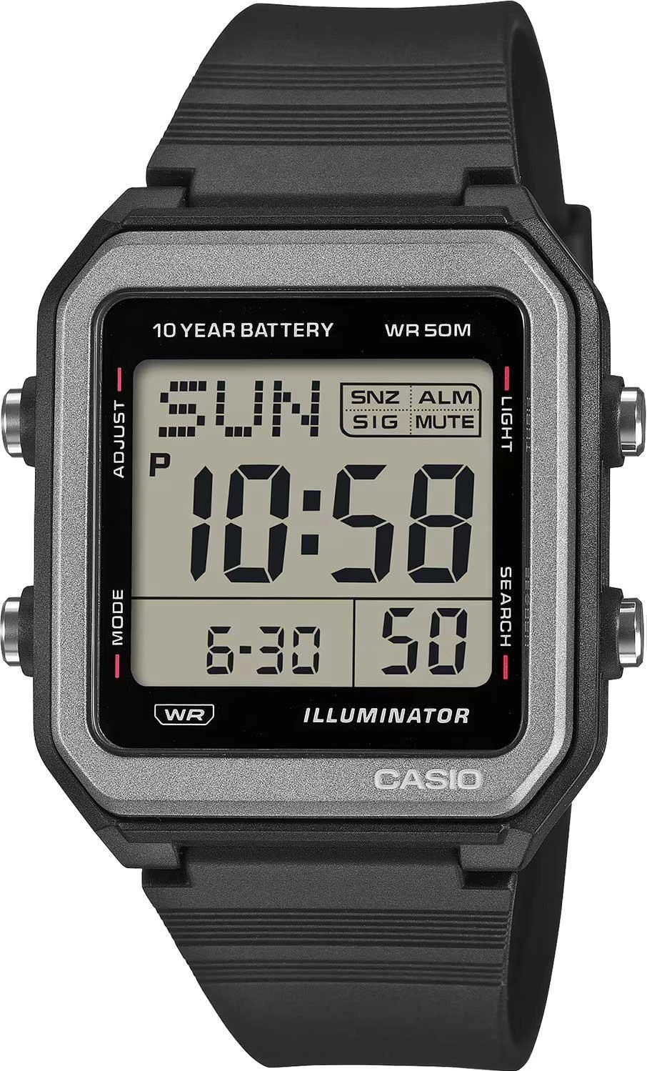 Унисекс часы Casio W-221H-1A. Циферблат подсвечивается светодиодом. Настраиваемое послесвечение 1,5 или 3сек. Цвет подсветки: оранжевый. Световая индикация сигнала. 12-ти и 24-х часовой формат времени. Секундомер с точностью показаний 1/100с и временем измерения 24ч. Секундомер с функцией SPLIT. Таймер обратного отсчета от 1мин до 24ч с автоповтором. Мировое время – 48 городов (29 часовых поясов). Функция включения/отключения летнего времени. Функция включения/отключения звука. 3 будильника, один с функцией Snooze, ежечасный сигнал. Автоматический календарь (до 2099 года). Батарея рассчитана на 10 лет. Ремешок из полимерного материала с классической застежкой. Батарея рассчитана на 10 лет. Ремешок из полимерного материала с классической застежкой.