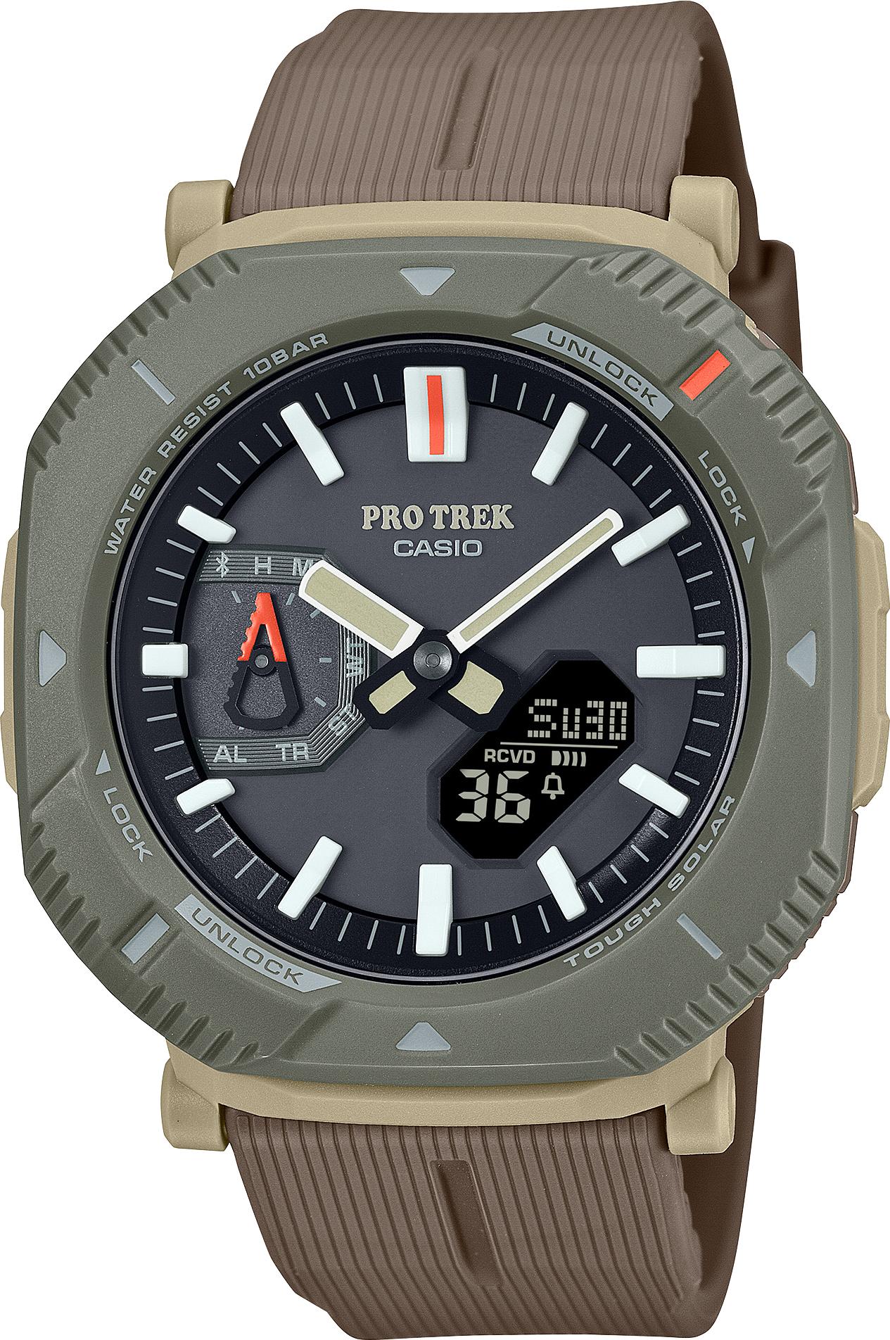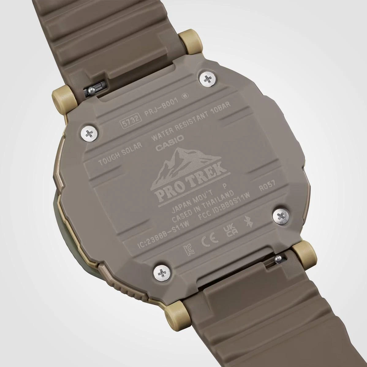 Унисекс наручные часы Casio ProTrek PRJ-B001-5E. Точный кварцевый механизм с аналого-цифровой индикацией. Полимерный ремешок. Натуральный полимерный материал является идеальным для изготовления ремешка благодаря своей чрезвычайной прочности и гибкости. После настройки автоматический календарь всегда отображает точную дату. Функция Bluetooth позволяет удобно отображать все метрики с часов на экране смартфона, а также выводить на часы уведомления о входящих звонках, сообщениях и имейлах. Функция будильника. Ежечасный сигнал. Функция хронографа. Индикатор запаса хода. Отображение текущего времени в основных городах и конкретных областях по всему миру. Модель устойчива к низким температурам. Солнечная батарейка. Солнечная подзаряжающаяся батарейка обеспечивает питание часов для работы. Функция таймера. Таймеры обратного отсчета напомнят Вам о текущих или особенных событиях, издав звуковой сигнал в установленное время. Отображение времени возможно в 12-часовом или 24-часовом формате. Полимерный ремешок. Натуральный полимерный материал является идеальным для изготовления ремешка благодаря своей чрезвычайной прочности и гибкости. Прочное, устойчивое к царапинам минеральное стекло защищает часы от повреждений. На циферблате отображается текущее число, месяц и день недели. Часы являются водонепроницаемыми до 10 Бар. Цвет циферблата: Черный. Цвет корпуса: Серый. Светодиодная подсветка. Высота (с ушками): 50 мм. Толщина: 13 мм. Гарантия: 2 года.