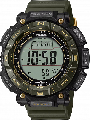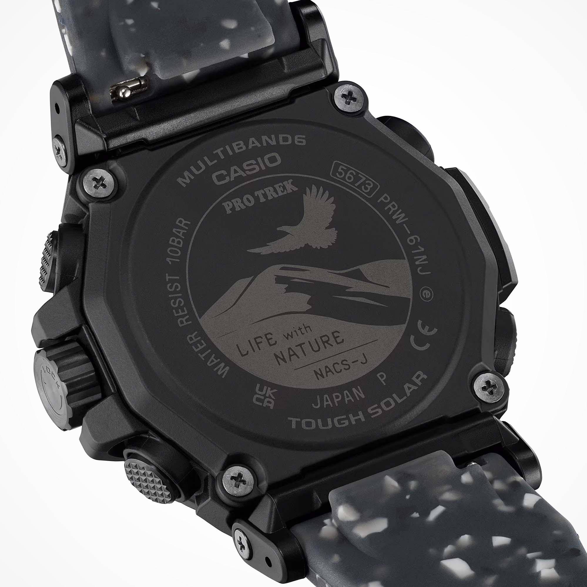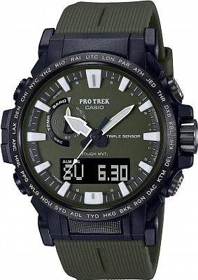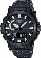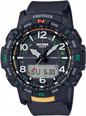 Мужские наручные часы Casio ProTrek PRW-61NJ-1E. Точный кварцевый механизм с аналого-цифровой индикацией. Полимерный ремешок. Натуральный полимерный материал является идеальным для изготовления ремешка благодаря своей чрезвычайной прочности и гибкости. После настройки автоматический календарь всегда отображает точную дату. Для подсветки дисплея используется светодиод, а так же имеет функцию автоматического включения подсветки, если Вы наклоните часы к своему лицу. Специальный датчик измеряет давление воздуха и отображает измеренное значение на экране в виде символа. Это дает возможность заранее определить изменения погоды. Функция будильника. Ежечасный сигнал. Функция хронографа. Встроенный цифровой компас определяет северный магнитный полюс. Отображение текущего времени в основных городах и конкретных областях по всему миру. Модель устойчива к низким температурам. Функция перемещения стрелок. Нажатие на кнопку обеспечит перемещение стрелок в такое положение, которое позволит Вам легко считать информацию с маленьких цифровых дисплеев – например, дату или показатели секундомера. Радио-синхронизация. Часы будут получать радио-сигнал калибровки, гарантирующий, что они всегда будут показывать точное время. Модель оснащена технологией SMART ACCESS, обеспечивающей быстрый и интуитивно понятный доступ ко всем важным функциям часов с помощью электронной заводной головки. Солнечная батарейка. Солнечная подзаряжающаяся батарейка обеспечивает питание часов для работы. Функция таймера. Таймеры обратного отсчета напомнят Вам о текущих или особенных событиях, издав звуковой сигнал в установленное время. Термометр. Датчик измеряет температуру окружающего воздуха вокруг часов и отображает ее на экране в градусах. Отображение времени возможно в 12-часовом или 24-часовом формате. Высотомер (альтиметр). Встроенный датчик давления определяет изменения в атмосферном давлении и преобразовывает полученные результаты в абсолютную высоту. Браслет из нержавеющей стали. Прочное, устойчивое к царапинам минеральное стекло защищает часы от повреждений. На циферблате отображается текущее число, месяц и день недели. Часы являются водонепроницаемыми до 10 Бар. Цвет циферблата: Черный. Цвет корпуса: Черный. Светодиодная подсветка. Высота (с ушками): 54 мм. Толщина: 15 мм. Гарантия: 2 года.