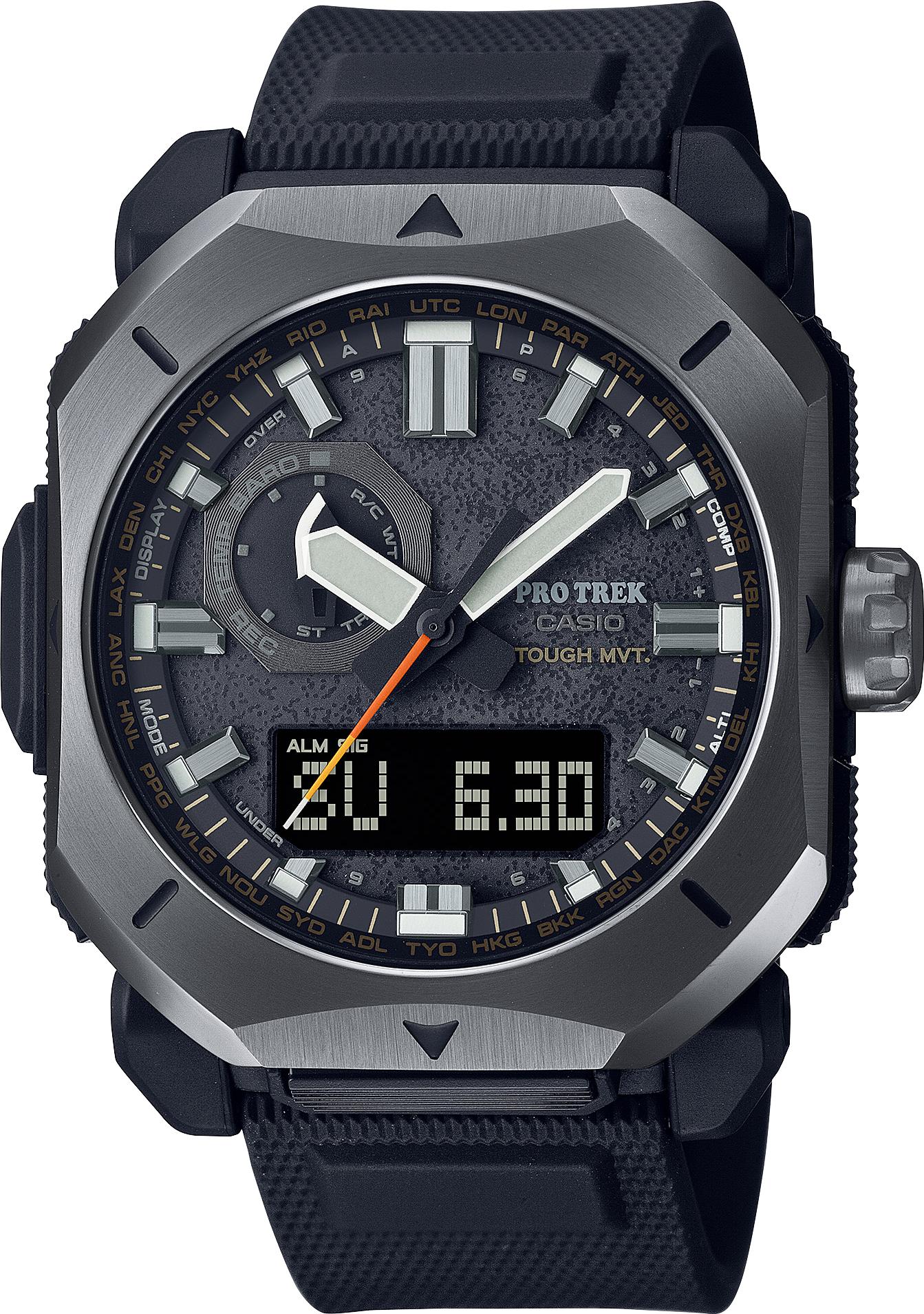 Мужские наручные часы Casio ProTrek PRW-6900Y-1E. Точный кварцевый механизм с аналого-цифровой индикацией. Корпус изготовлен из высококачественной нержавеющей стали 316L с высокими антикоррозийными свойствами. Светодиодная подсветка. На циферблате отображается текущее число, месяц и день недели. Ударопрочная конструкция часов защищает от ударов и вибрации. Солнечная батарейка. Солнечная подзаряжающаяся батарейка обеспечивает питание часов для работы. Радио-синхронизация. Часы будут получать радио-сигнал калибровки, гарантирующий, что они всегда будут показывать точное время. Встроенный цифровой компас определяет северный магнитный полюс. Термометр. Датчик измеряет температуру окружающего воздуха вокруг часов и отображает ее на экране в градусах. Высотомер (альтиметр). Встроенный датчик давления определяет изменения в атмосферном давлении и преобразовывает полученные результаты в абсолютную высоту. Специальный датчик измеряет давление воздуха и отображает измеренное значение на экране в виде символа. Это дает возможность заранее определить изменения погоды. Функция хронографа. Функция таймера. Таймеры обратного отсчета напомнят Вам о текущих или особенных событиях, издав звуковой сигнал в установленное время. Функция будильника. Отображение текущего времени в основных городах и конкретных областях по всему миру. Модель оснащена технологией SMART ACCESS, обеспечивающей быстрый и интуитивно понятный доступ ко всем важным функциям часов с помощью электронной заводной головки. Отображение времени возможно в 12-часовом или 24-часовом формате. Полимерный ремешок. Натуральный полимерный материал является идеальным для изготовления ремешка благодаря своей чрезвычайной прочности и гибкости. Прочное, устойчивое к царапинам минеральное стекло защищает часы от повреждений. Часы являются водонепроницаемыми до 20 Бар. Цвет корпуса: Черный. Цвет циферблата: Черный. Ширина (с заводной головкой): 50мм. Толщина: 15мм. Гарантия: 2 года. Другие наименования модели: PRW-6900Y-1ER.