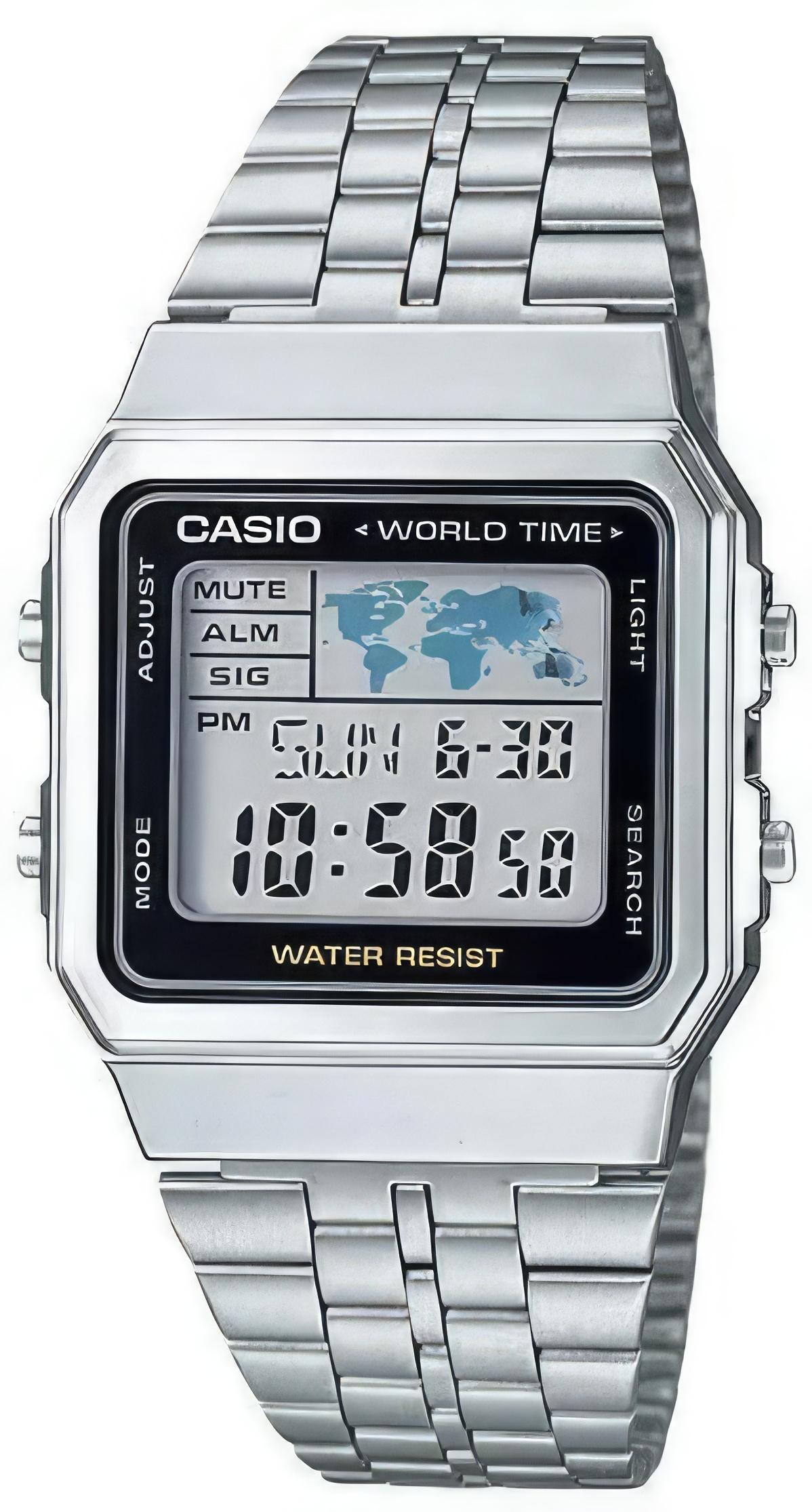 Наручные часы в универсальном стиле предназначены для мужчин и женщин. Индикация часовых поясов на дисплее. Пластиковый корпус с хромированием и стальной браслет. Многофункциональный кварцевый механизм с цифровой индикацией и подсветкой.