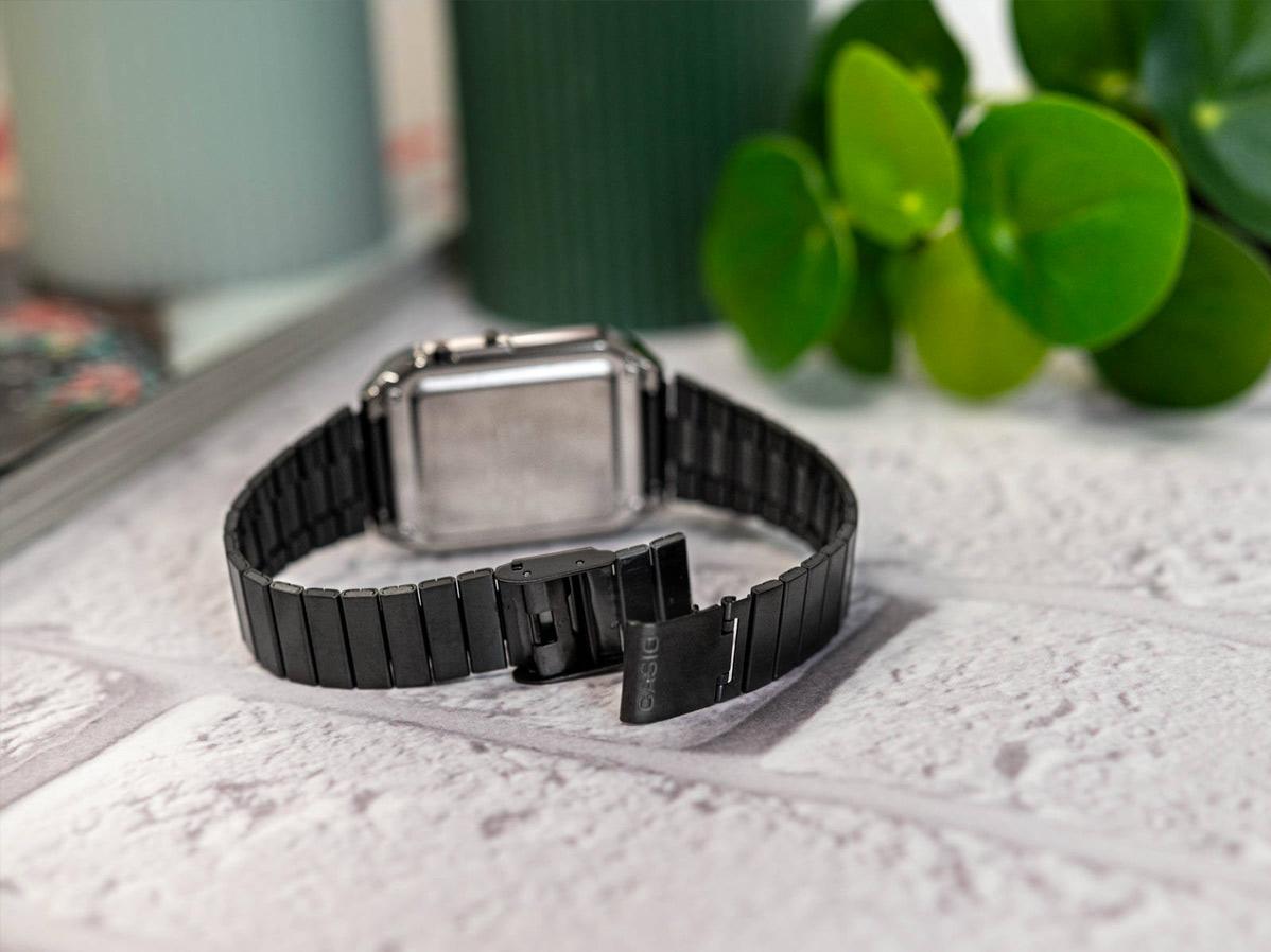 Специальная конструкция позволяет самостоятельно настроить длину браслета под любое запястье без использования инструментов. Передвижной механизм обеспечивает идеальную посадку и максимальный комфорт в течение всего дня.