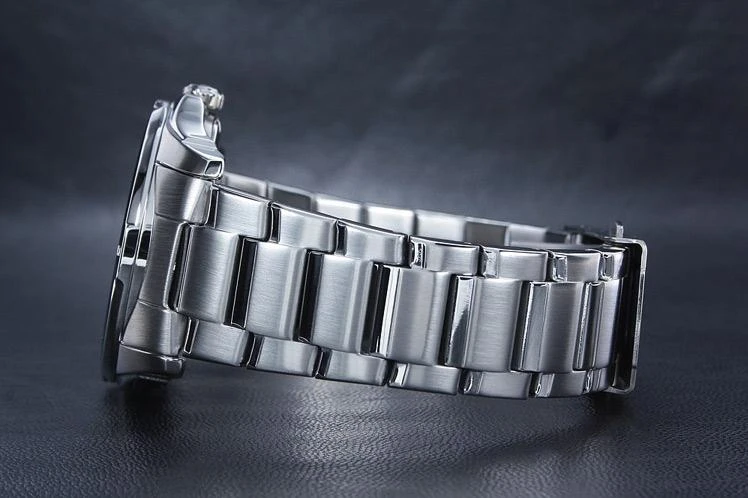 Точный кварцевый механизм. Центральная секундная стрелка. Окошко даты и дня недели. • Точность хода: не хуже +/-20 секунд в месяц. • Срок службы батареи 3 года. Элемент питания SR626SW. • Задняя крышка с винтовым фиксатором. •Минеральное стекло устойчивое к царапанию. • Корпус из высококачественного стального сплава 316L с высокими антикоррозийными свойствами. • Водозащита до 10 АТМ. • Браслет из нержавеющей стали. • Браслетный замок с тройным сгибом, растегиваемый одним касанием. • Размеры корпуса 49 мм (по оси заводной головки) х 44,8 мм (по вертикали) х 10,4 мм (толщина) / 156 грамм.