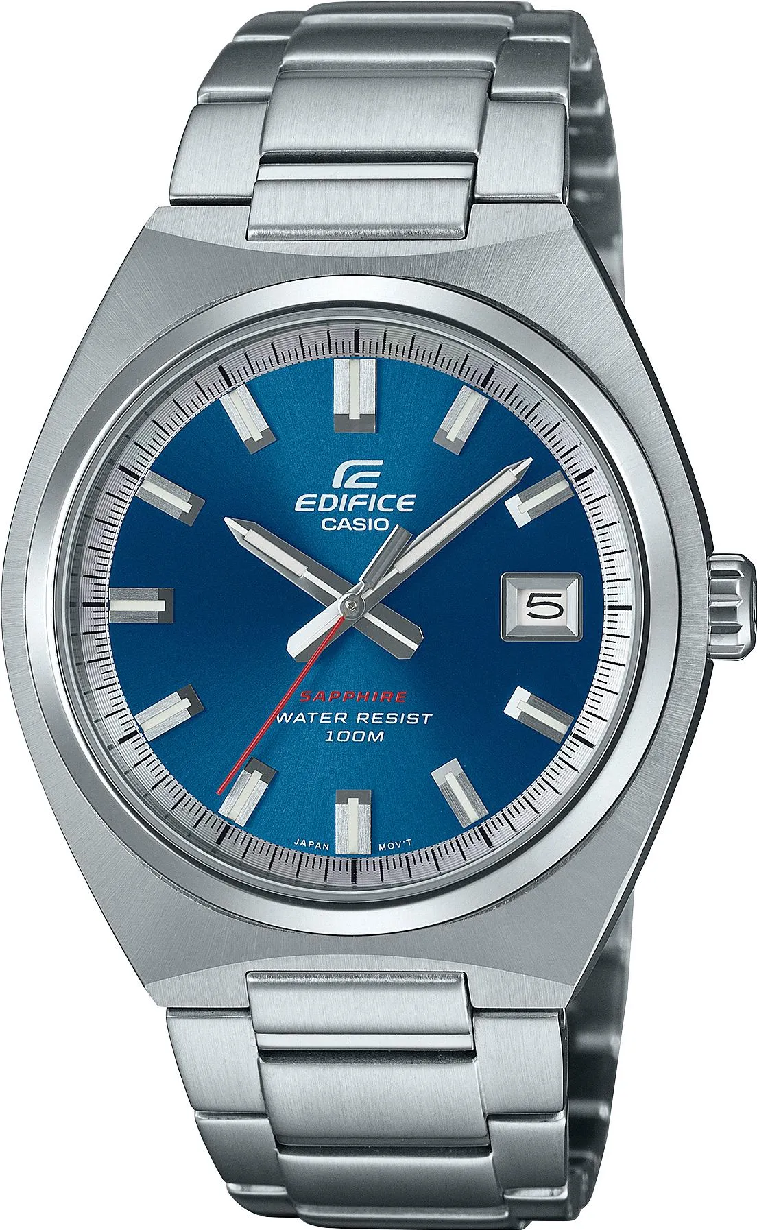 Мужские наручные часы Casio Edifice EFB-109D-2A. Точный кварцевый механизм с аналоговой индикацией. Браслет из нержавеющей стали. Аккумулятор обеспечивает часы достаточным питанием приблизительно на 3 года. Браслет из нержавеющей стали. Сапфировое стекло. Искусственно изготовленное стекло с высокой прочностью и устойчивостью к царапинам. На циферблате отображается текущее число месяца. Часы являются водонепроницаемыми до 3 Бар. Цвет циферблата: Серебристый. Цвет корпуса: Синий. Цвет корпуса: Серебристый. Толщина: 9 мм. Гарантия: 2 года.