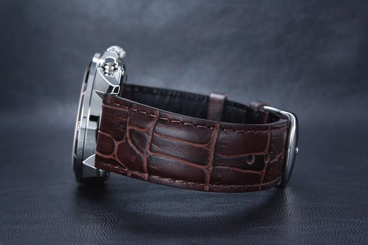 Точный кварцевый механизм хронографа. Смещенная секундная стрелка. Окошко даты. • Точность хода не хуже -10 +15 сек./в месяц. • Минеральное стекло устойчивое к возникновению царапин. • Корпус из высококачественного стального сплава 316L с высокими антикоррозийными свойствами. • Кожаный ремешок. • Водозащита до 10 АТМ. • Светонакопительный состав на стрелках и маркерах часа. Производитель: Япония.