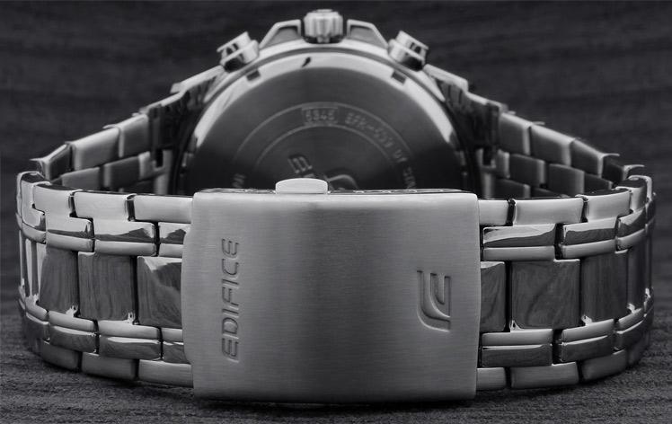 Удобная застежка, расстегиваемая одним касанием. Благодаря своей конструкции она никогда не размыкается полностью, а раскладывается на три части. Это позволяет легко снимать и надевать часы, сводя вероятность их падения или потери при случайном расстегивании к минимуму.