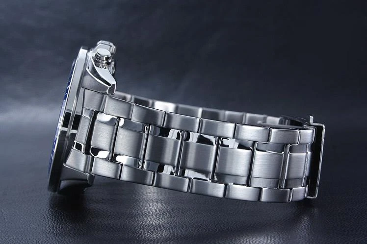 Удобная застежка, расстегиваемая одним касанием. Благодаря своей конструкции она никогда не размыкается полностью, а раскладывается на три части. Это позволяет легко снимать и надевать часы, сводя вероятность их падения или потери при случайном расстегивании к минимуму.