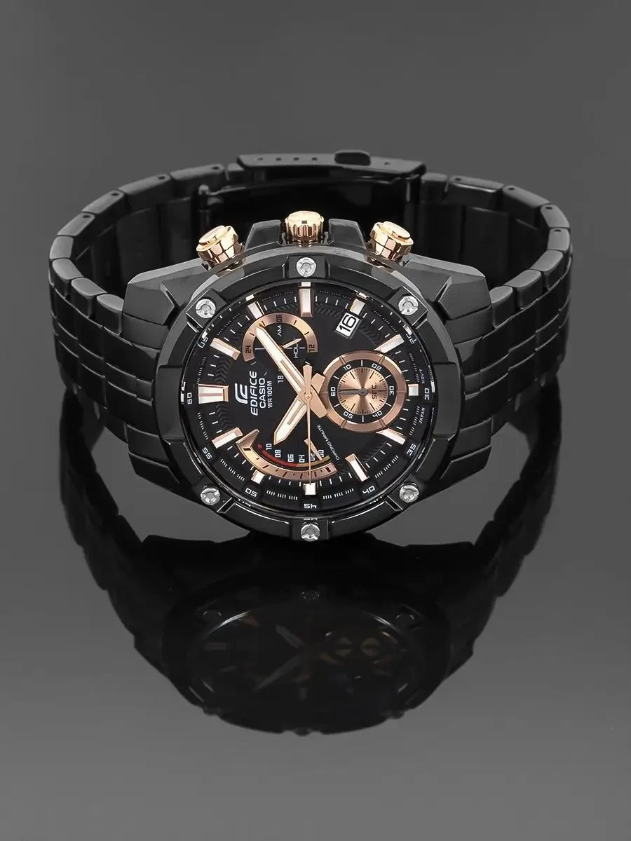 Мужские наручные часы Casio Edifice EFR-559DC-1A. Точный кварцевый механизм с аналоговой индикацией. Корпус изготовлен из высококачественной нержавеющей стали 316L с высокими антикоррозийными свойствами. На стрелки и отметки нанесен светонакопительный состав, благодаря этому считывать информацию с циферблата возможно и в темноте. На циферблате отображается текущее число месяца. Функция хронографа. Браслет из нержавеющей стали. Прочное, устойчивое к царапинам минеральное стекло защищает часы от повреждений. Часы являются водонепроницаемыми до 10 Бар. Цвет корпуса: Черный. Цвет циферблата: Черный. Ширина (с заводной головкой): 55мм. Толщина: 13мм. Гарантия: 2 года.