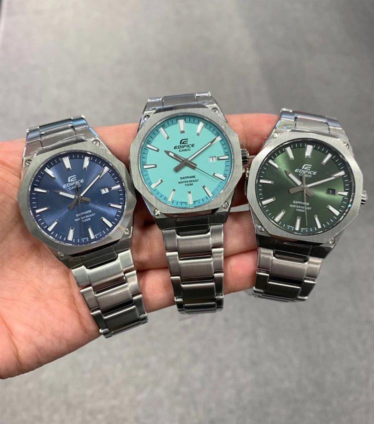 Мужские наручные часы Casio Edifice EFR-S108D-3A. Точный кварцевый механизм с аналоговой индикацией. Корпус изготовлен из высококачественной нержавеющей стали 316L с высокими антикоррозийными свойствами. На стрелки и отметки нанесен светонакопительный состав, благодаря этому считывать информацию с циферблата возможно и в темноте. На циферблате отображается текущее число месяца. Аккумулятор обеспечивает часы достаточным питанием приблизительно на 3 года. Браслет из нержавеющей стали. Сапфировое стекло. Искусственно изготовленное стекло с высокой прочностью и устойчивостью к царапинам. Часы являются водонепроницаемыми до 10 Бар. Цвет корпуса: Серебристый. Цвет циферблата: Зеленый. Ширина (с заводной головкой): 45мм. Толщина: 8мм. Гарантия: 2 года. Другие наименования модели: EFR-S108D-3AVUDF.
