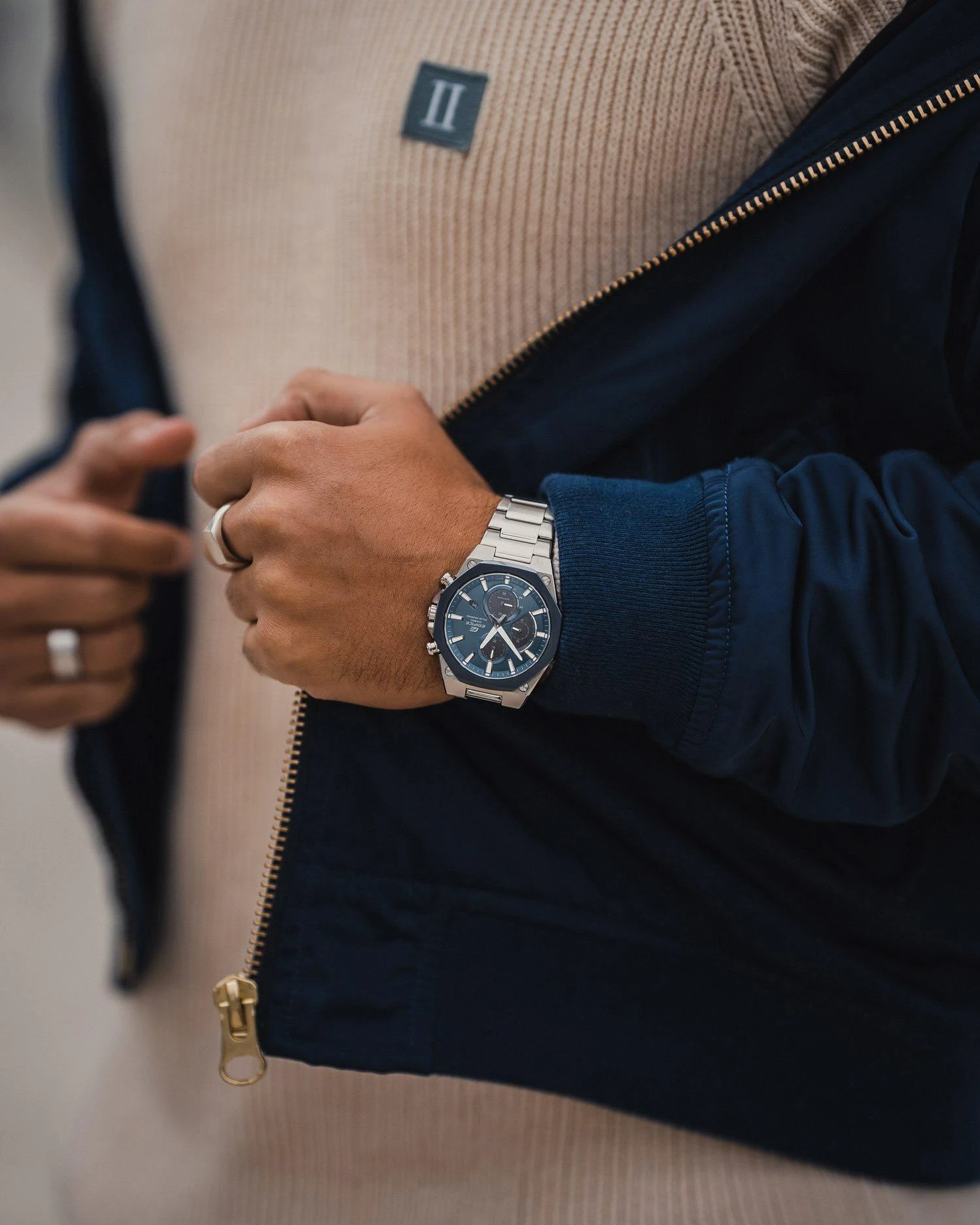 Удобная застежка, расстегиваемая одним касанием. Благодаря своей конструкции она никогда не размыкается полностью, а раскладывается на три части. Это позволяет легко снимать и надевать часы, сводя вероятность их падения или потери при случайном расстегивании к минимуму.