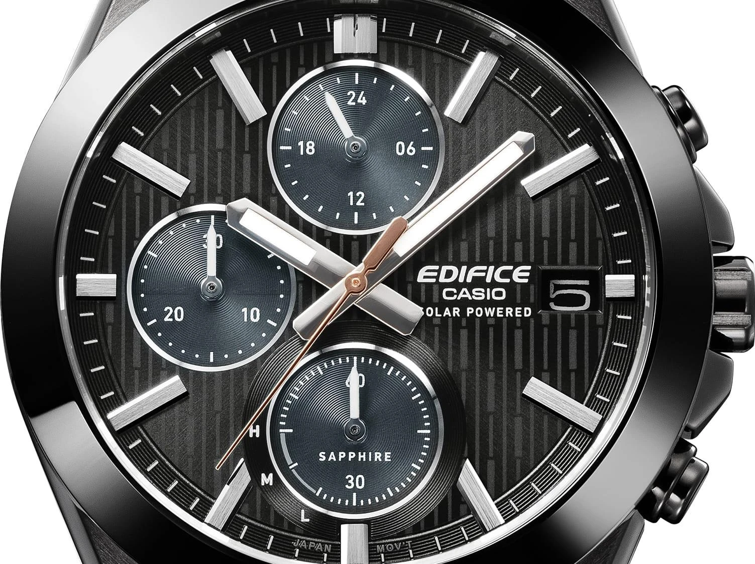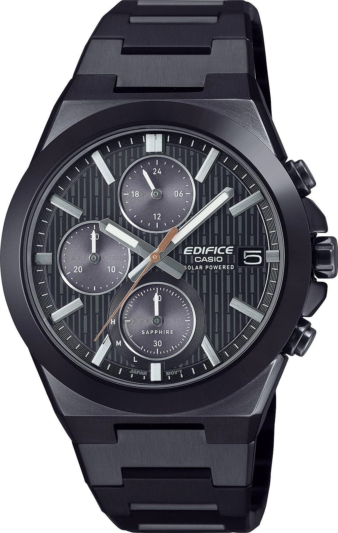 Представляем первые часы EDIFICE с керамическим безелем, созданные с изяществом и долговечностью. Тщательно отполированный керамический безель с его тонкими и изысканными оттенками напоминает великолепную блестящую текстуру элитного спорткара и обеспечивает даже большую устойчивость к царапинам, чем нержавеющая сталь, обеспечивая долговечность и долговечность. Плоский корпус и браслет из нержавеющей стали отличаются тщательной зеркальной и волосяной полировкой, а циферблат украшен изысканным узором, подчеркивающим элегантность общего дизайна. Корпус меньшего размера, диаметром 39,5 мм, сочетает в себе стиль и практичность. Сапфировое стекло обеспечивает хорошую видимость и устойчивость к царапинам. Часы работают на солнечной энергии для длительного срока службы аккумулятора, оснащены секундомером и водонепроницаемы до 100 метров.