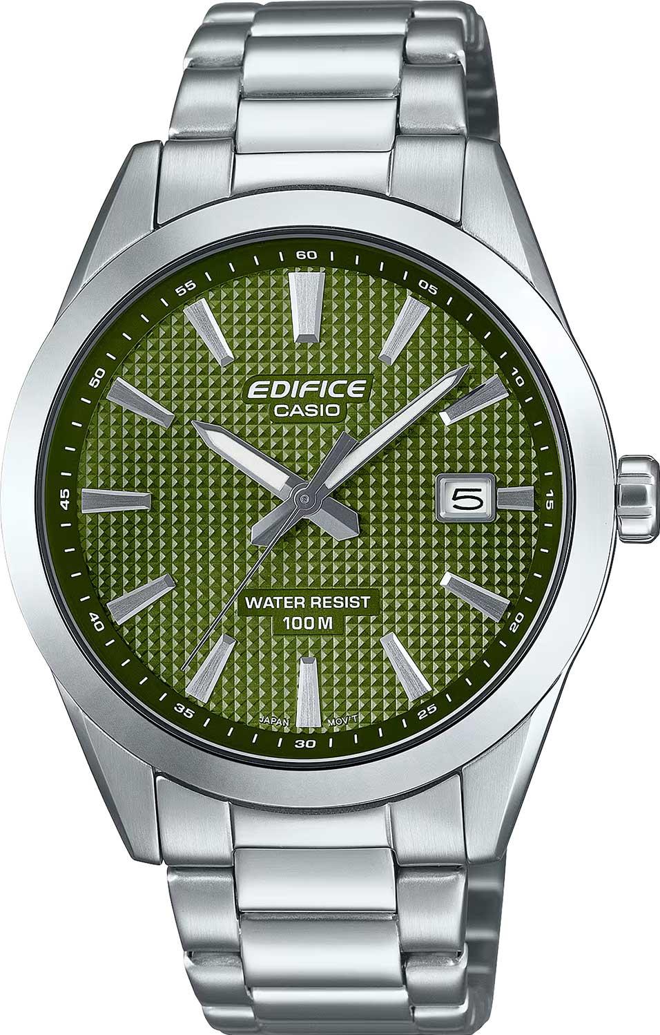 Мужские наручные часы с кварцевым механизмом. Корпус круглой формы диаметром 40 мм изготовлен из нержавеющей стали. Модель комплектуется стальным браслетом с раскладывающейся застежкой. Циферблат зеленого цвета оснащен центральными часовой, минутной и секундной стрелками, а также апертурой индикации даты в позиции 3 часов. Защиту циферблата обеспечивает устойчивое к повреждениям минеральное стекло. Водонепроницаемость модели составляет 100 метров (10 бар), что допускает использование часов при плавании.