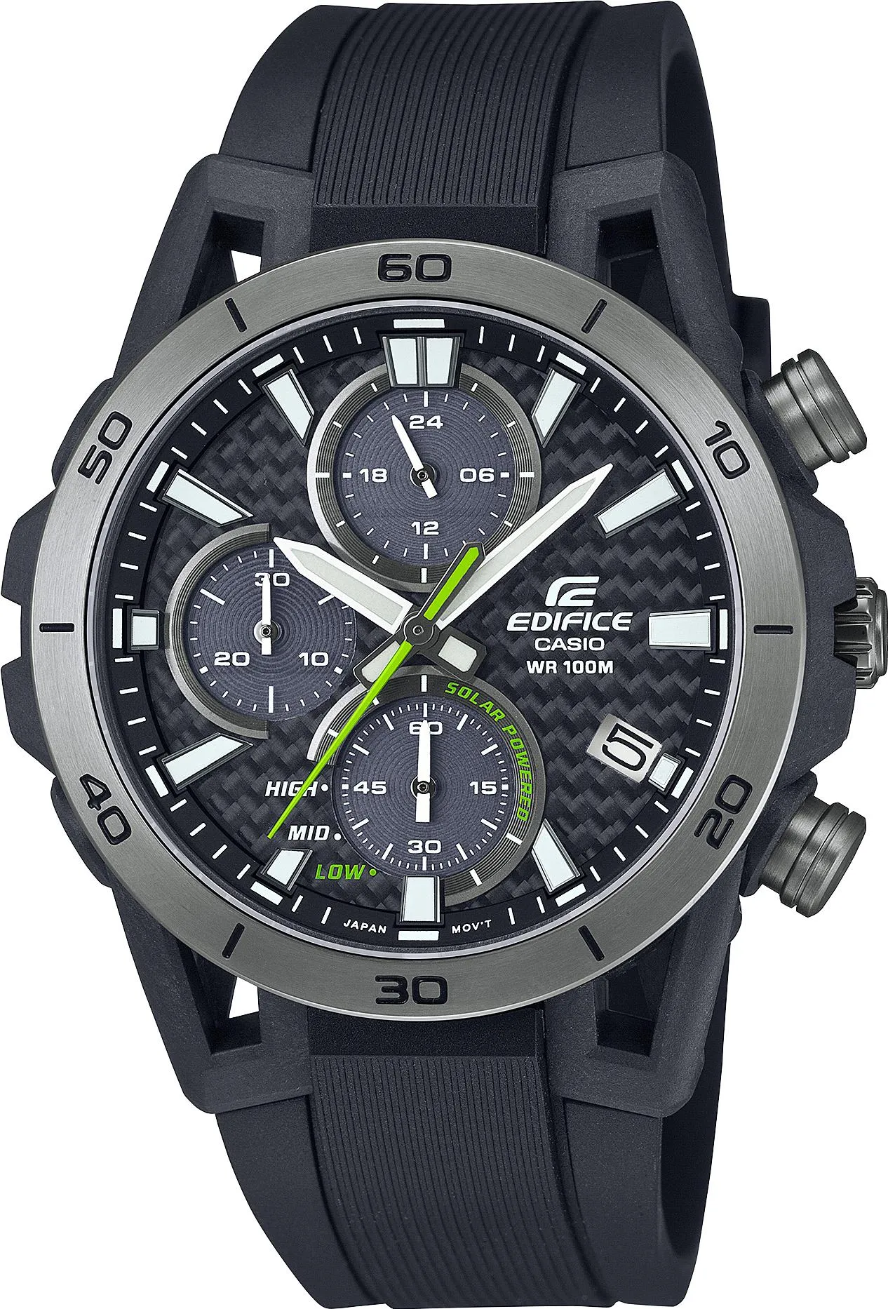 Мужские наручные часы Casio Edifice EQS-960PB-1A. Точный кварцевый механизм с аналоговой индикацией. Полимерный ремешок. Натуральный полимерный материал является идеальным для изготовления ремешка благодаря своей чрезвычайной прочности и гибкости. Функция будильника. Функция хронографа. Отображение времени возможно в 12-часовом или 24-часовом формате. Браслет из нержавеющей стали. Прочное, устойчивое к царапинам минеральное стекло защищает часы от повреждений. На циферблате отображается текущее число месяца. Часы являются водонепроницаемыми до 10 Бар. Цвет циферблата: Черный. Цвет корпуса: Черный. На стрелки и отметки нанесен светонакопительный состав, благодаря этому считывать информацию с циферблата возможно и в темноте. Высота (с ушками): 57 мм. Толщина: 13 мм. Гарантия: 2 года.