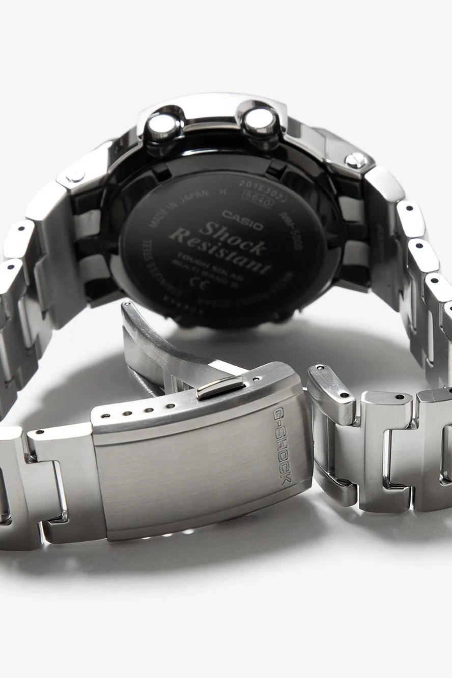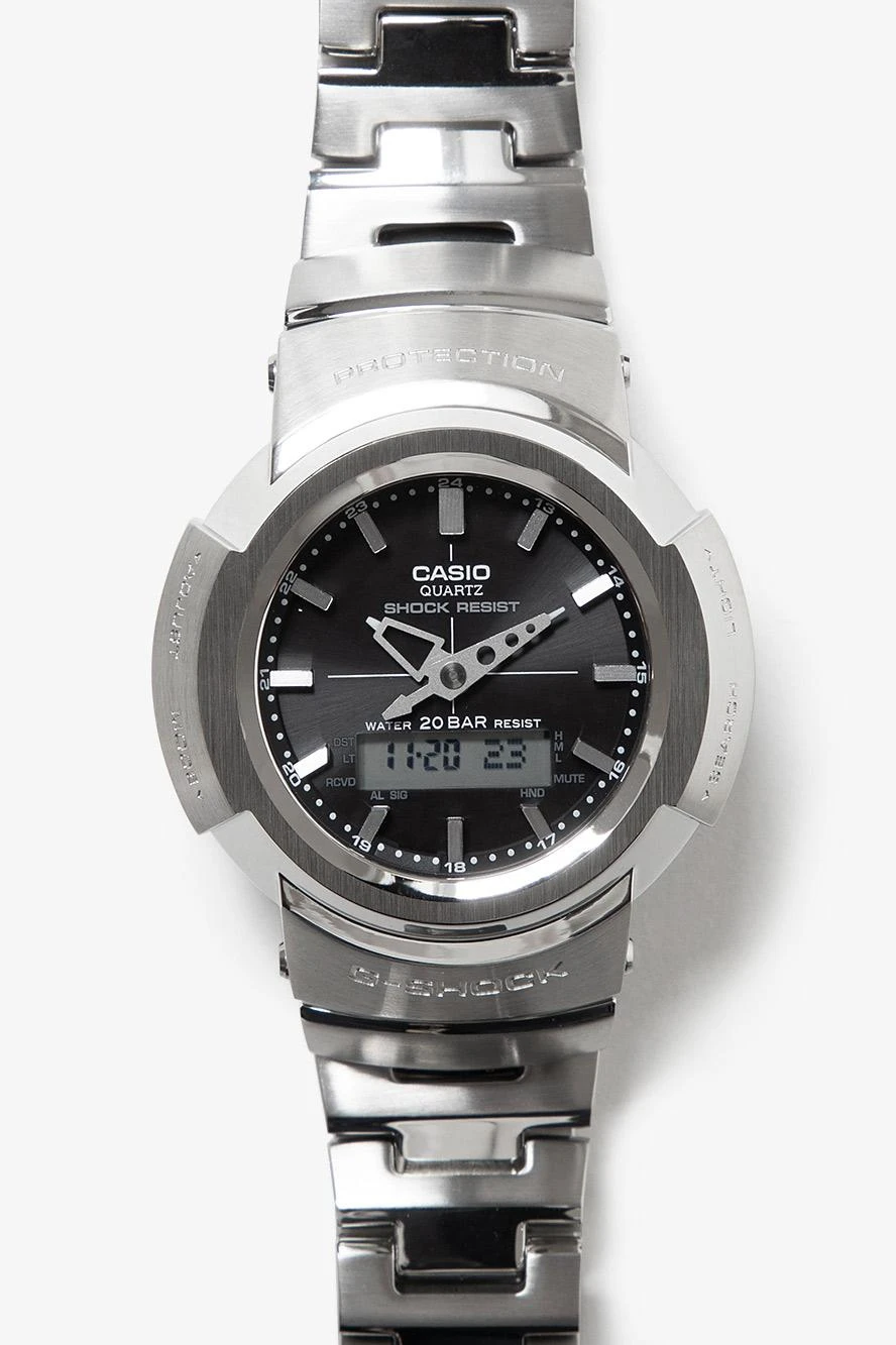 Мужские наручные часы Casio G-Shock AWM-500D-1A. Точный кварцевый механизм с аналого-цифровой индикацией. Браслет из нержавеющей стали. После настройки автоматический календарь всегда отображает точную дату. Функция будильника. Функция хронографа. Индикатор запаса хода. Отображение текущего времени в основных городах и конкретных областях по всему миру. Радио-синхронизация. Часы будут получать радио-сигнал калибровки, гарантирующий, что они всегда будут показывать точное время. Солнечная батарейка. Солнечная подзаряжающаяся батарейка обеспечивает питание часов для работы. Функция таймера. Таймеры обратного отсчета напомнят Вам о текущих или особенных событиях, издав звуковой сигнал в установленное время. Ударопрочная конструкция часов защищает от ударов и вибрации. Отображение времени возможно в 12-часовом или 24-часовом формате. Браслет из нержавеющей стали. Прочное, устойчивое к царапинам минеральное стекло защищает часы от повреждений. На циферблате отображается текущее число, месяц и день недели. Часы являются водонепроницаемыми до 20 Бар. Цвет циферблата: Серебристый. Цвет корпуса: Черный. Светодиодная подсветка. Толщина: 14 мм. Гарантия: 2 года.