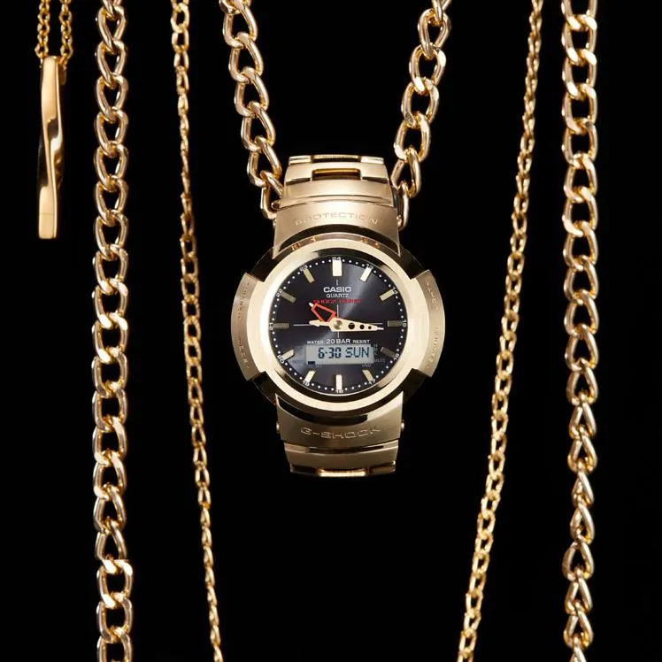 Мужские наручные часы Casio G-Shock AWM-500GD-9A. Точный кварцевый механизм с аналого-цифровой индикацией. Корпус изготовлен из высококачественной нержавеющей стали 316L с высокими антикоррозийными свойствами. Светодиодная подсветка. На циферблате отображается текущее число, месяц и день недели. Ударопрочная конструкция часов защищает от ударов и вибрации. Солнечная батарейка. Солнечная подзаряжающаяся батарейка обеспечивает питание часов для работы. Функция хронографа. Функция будильника. Индикатор запаса хода. Отображение текущего времени в основных городах и конкретных областях по всему миру. После настройки автоматический календарь всегда отображает точную дату. Отображение времени возможно в 12-часовом или 24-часовом формате. Браслет из нержавеющей стали. Прочное, устойчивое к царапинам минеральное стекло защищает часы от повреждений. Часы являются водонепроницаемыми до 20 Бар. Цвет корпуса: Желтое золото. Цвет циферблата: Черный. Ширина (с заводной головкой): 52мм. Толщина: 14мм. Гарантия: 2 года. Другие наименования модели: AWM-500GD-9AER.