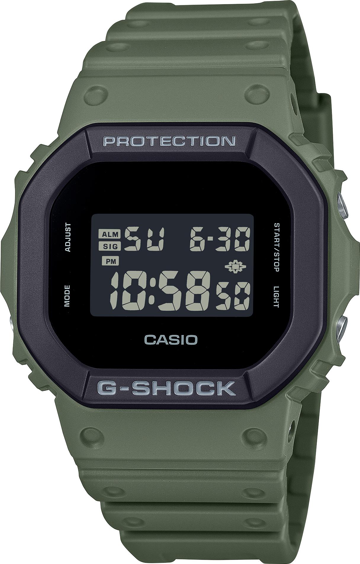 Мужские наручные часы Casio G-Shock DW-5610UU-3E. Точный кварцевый механизм с цифровой индикацей. Ударопрочная конструкция часов защищает от ударов и вибрации. Функция будильника. Функция таймера. Таймеры обратного отсчета напомнят Вам о текущих или особенных событиях, издав звуковой сигнал в установленное время. Для подсветки дисплея используется светодиод, а так же имеет функцию автоматического включения подсветки, если Вы наклоните часы к своему лицу. После настройки автоматический календарь всегда отображает точную дату. Отображение времени возможно в 12-часовом или 24-часовом формате. Аккумулятор обеспечивает часы достаточным питанием приблизительно на 5 лет. Прочное, устойчивое к царапинам минеральное стекло защищает часы от повреждений. На циферблате отображается текущее число, месяц и день недели. Часы являются водонепроницаемыми до 3 Бар. Цвет циферблата: Зеленый. Цвет корпуса: Черный. Светодиодная подсветка. Толщина: 13 мм. Гарантия: 2 года.