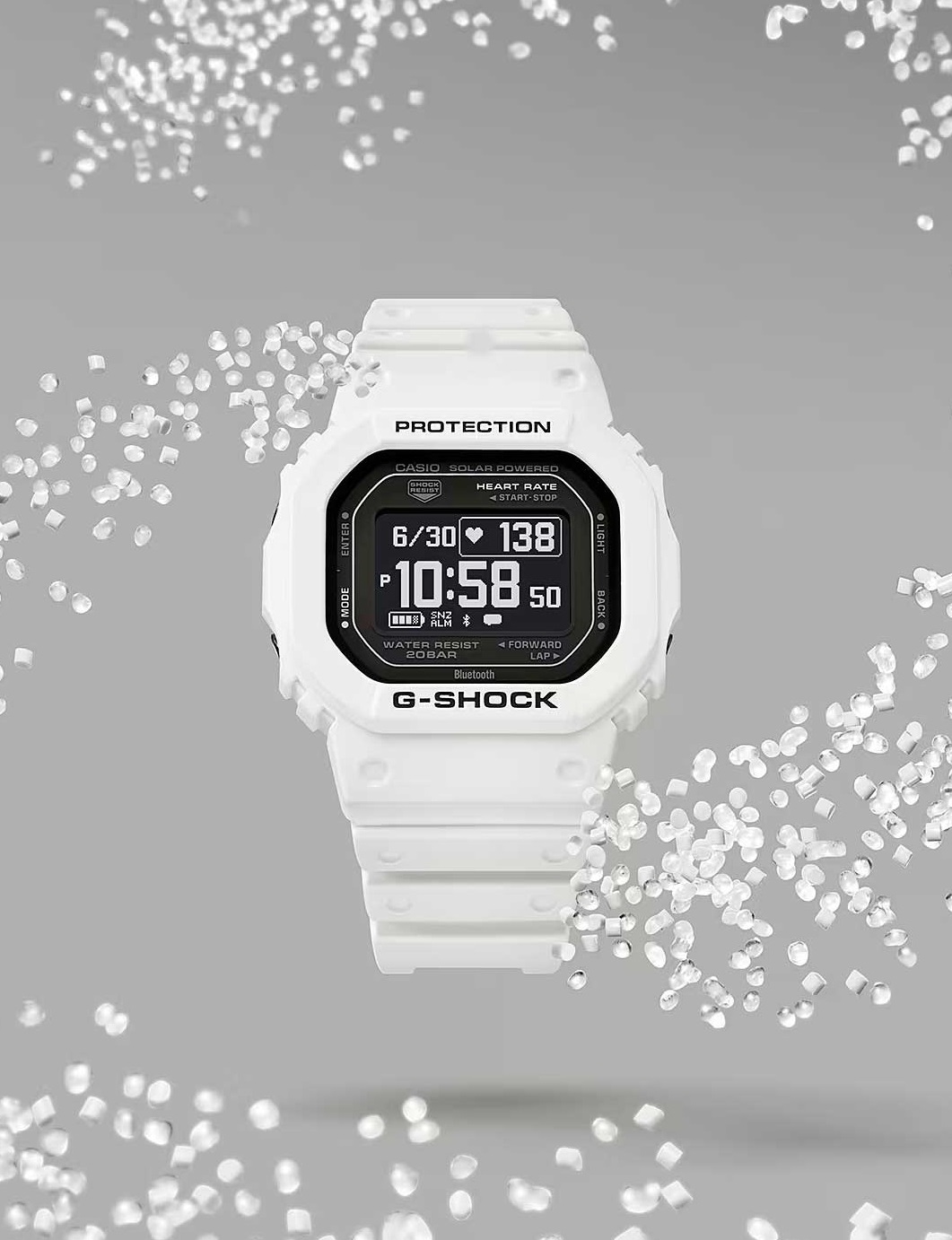 Мужские наручные часы Casio G-Shock DW-H5600-7E. Точный кварцевый механизм с цифровой индикацей. Полимерный корпус надежно защищает часы от механических повреждений. Светодиодная подсветка. На циферблате отображается текущее число, месяц и день недели. Автоматический календарь. Авто подсветка. Bluetooth. Будильник. Ежечасный сигнал. Фазы луны. Хронограф. Мировое время. Шагомер. Солнечная батарея. Таймер. Ударопрочность. Время восхода/заката. 12/24-часовое отображение времени. Полимерный ремешок. Натуральный полимерный материал является идеальным для изготовления ремешка благодаря своей чрезвычайной прочности и гибкости. Прочное, устойчивое к царапинам минеральное стекло защищает часы от повреждений. Часы являются водонепроницаемыми до 20 Бар. Цвет корпуса: Белый. Цвет циферблата: Черный. Ширина (с заводной головкой): 45мм. Толщина: 17мм. Гарантия: 2 года. Другие наименования модели: DW-H5600-7.