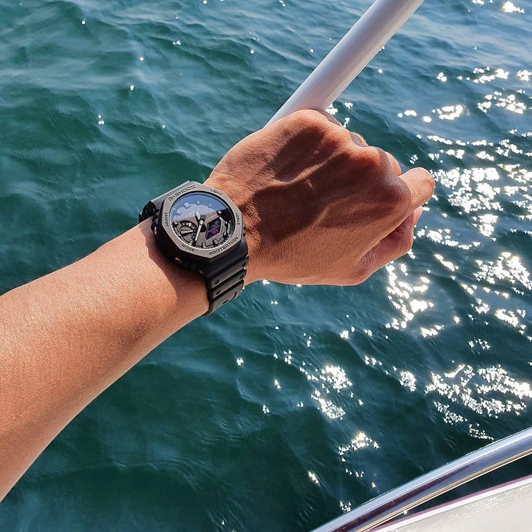 • Усиленный углеродными волокнами резиновый корпус. Резина обладает высокой прочностью и является идеальным материалом для часов. В сочетании с высокой устойчивостью карбона мы имеем корпус, который по-прежнему способен выдержать высокую нагрузку и мало восприимчив к внешним воздействиям, и при этом предлагает дополнительную прочность.