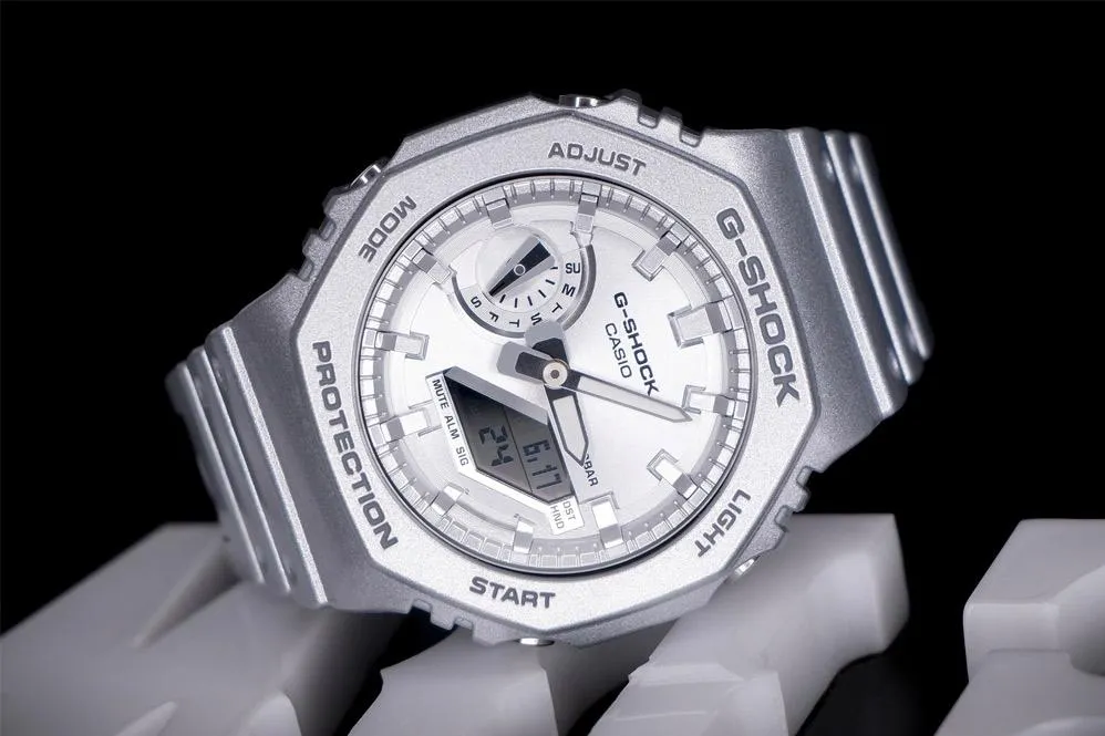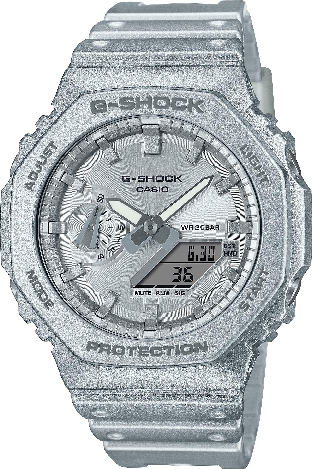 Мужские наручные часы Casio G-Shock GA-2100FF-8A. Точный кварцевый механизм с аналого-цифровой индикацией. Полимерный корпус надежно защищает часы от механических повреждений. Светодиодная подсветка. На циферблате отображается текущее число, месяц и день недели. Ударопрочная конструкция часов защищает от ударов и вибрации. Функция хронографа. Функция таймера. Таймеры обратного отсчета напомнят Вам о текущих или особенных событиях, издав звуковой сигнал в установленное время. Для подсветки дисплея используется светодиод, а так же имеет функцию автоматического включения подсветки, если Вы наклоните часы к своему лицу. Функция будильника. Аккумулятор обеспечивает часы достаточным питанием приблизительно на 3 года. Отображение текущего времени в основных городах и конкретных областях по всему миру. После настройки автоматический календарь всегда отображает точную дату. Отображение времени возможно в 12-часовом или 24-часовом формате. Ударопрочная конструкция часов защищает от ударов и вибрации. Функция хронографа. Функция таймера. Таймеры обратного отсчета напомнят Вам о текущих или особенных событиях, издав звуковой сигнал в установленное время. Для подсветки дисплея используется светодиод, а так же имеет функцию автоматического включения подсветки, если Вы наклоните часы к своему лицу. Функция будильника. Аккумулятор обеспечивает часы достаточным питанием приблизительно на 3 года. Отображение текущего времени в основных городах и конкретных областях по всему миру. После настройки автоматический календарь всегда отображает точную дату. Отображение времени возможно в 12-часовом или 24-часовом формате. Полимерный ремешок. Натуральный полимерный материал является идеальным для изготовления ремешка благодаря своей чрезвычайной прочности и гибкости. Прочное, устойчивое к царапинам минеральное стекло защищает часы от повреждений.Часы являются водонепроницаемыми до 20 Бар. Цвет корпуса: Серебристый. Цвет циферблата: Серебристый. Ширина (с заводной головкой): 48мм. Толщина: 12мм. Гарантия: 2 года. Другие наименования модели: GA-2100FF-8ADR.