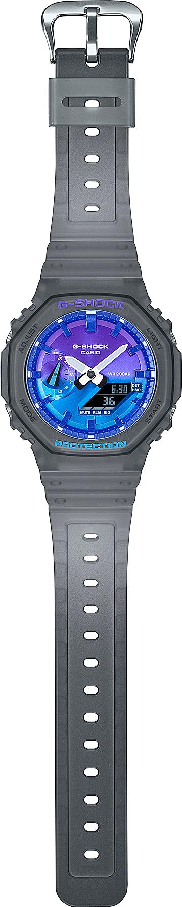 Модель GA-2100 с культовым восьмиугольным корпусом представлена в двух огненных вариациях: