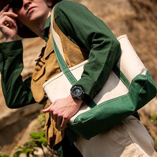 Резина обладает высокой прочностью и является идеальным материалом для часов. В сочетании с высокой устойчивостью карбона мы имеем корпус, который по-прежнему способен выдержать высокую нагрузку и мало восприимчив к внешним воздействиям, и при этом предлагает дополнительную прочность. - Ремешок из полимерного материала.