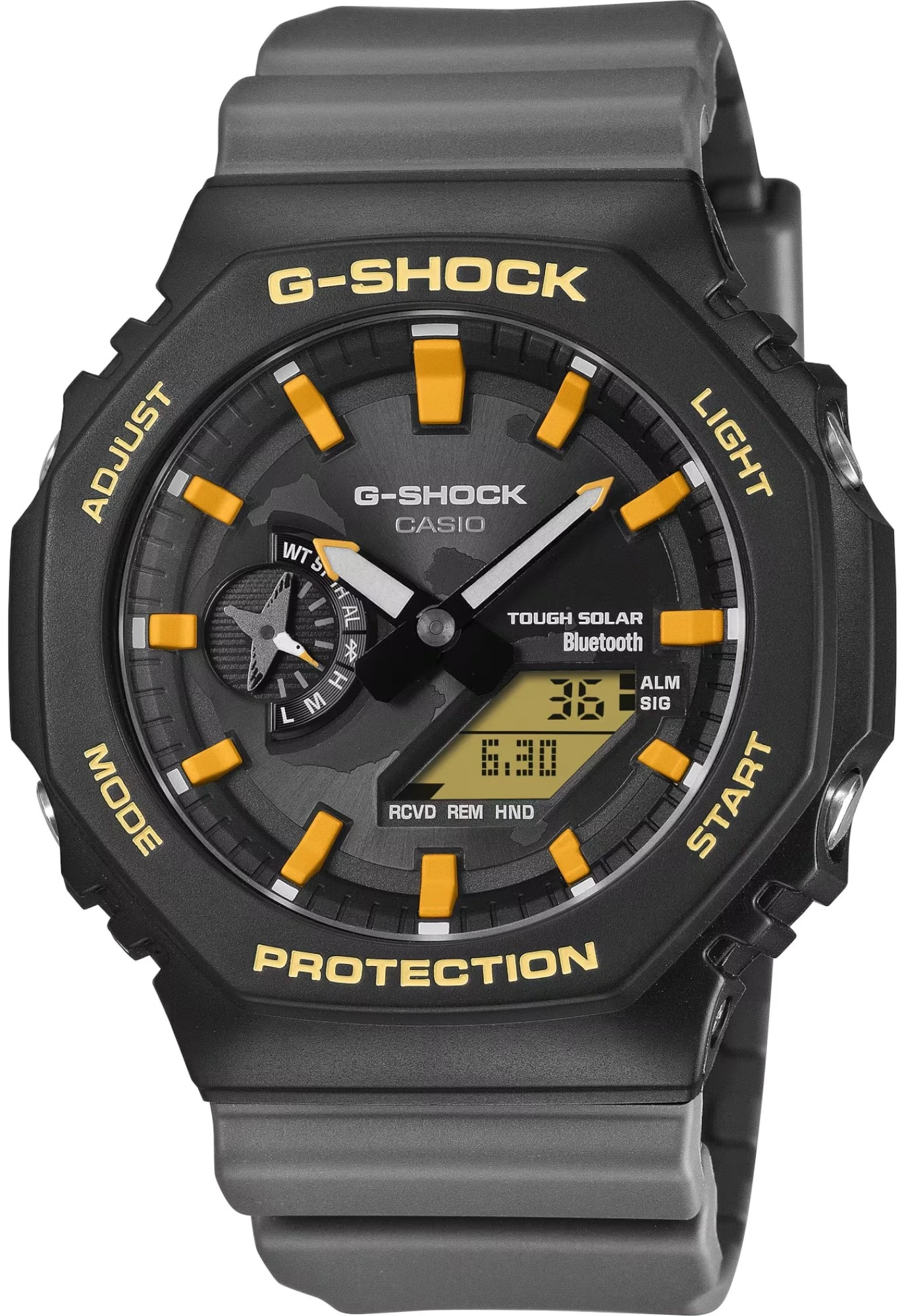 Особенности модели: двойная светодиодная подсветка, необритовое светонакопительное покрытие, функция поиска телефона, точность хода -/+15 сек. в мес., ударопрочность, 5 ежедневных будильников, ежечасный сигнал времени, технология Carbon Core Guard, 12/24-часовое отображение времени, функция мирового времени, автоматический календарь, водозащита (20 бар), секундомер с точностью до 1/100 секунды, включение/выключение звука кнопок, солнечная батарея, функция перемещения стрелок, индикатор уровня заряда батареи, работа без подзарядки до 7 месяцев, синхронизация со смартфоном при помощи Bluetooth, таймер обратного отсчета. Карбоновый корпус, полимерный безель, ремешок из полимерного материала. Минеральное стекло.