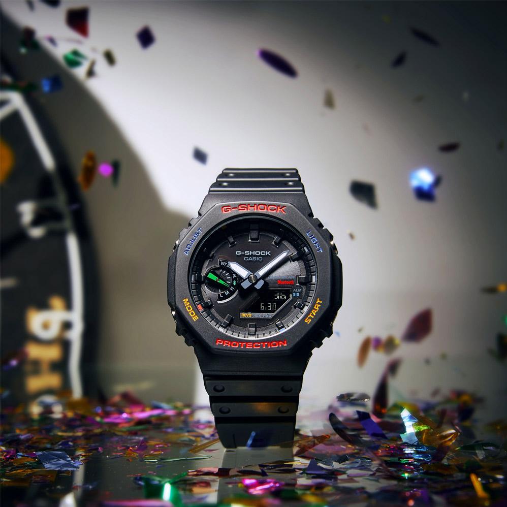 Мужские наручные часы Casio G-Shock GA-B2100FC-1A. Точный кварцевый механизм с аналого-цифровой индикацией. Корпус карбоновый. Карбон отличается антикоррозийностью, гипоаллергенностью и легкостью. На циферблате отображается текущее число, месяц и день недели. Ударопрочная конструкция часов защищает от ударов и вибрации. Солнечная батарейка. Солнечная подзаряжающаяся батарейка обеспечивает питание часов для работы. Функция Bluetooth позволяет удобно отображать все метрики с часов на экране смартфона, а также выводить на часы уведомления о входящих звонках, сообщениях и имейлах. Функция хронографа. Функция таймера. Таймеры обратного отсчета напомнят Вам о текущих или особенных событиях, издав звуковой сигнал в установленное время. Функция будильника. Индикатор запаса хода. Отображение текущего времени в основных городах и конкретных областях по всему миру. После настройки автоматический календарь всегда отображает точную дату. Отображение времени возможно в 12-часовом или 24-часовом формате. Полимерный ремешок. Натуральный полимерный материал является идеальным для изготовления ремешка благодаря своей чрезвычайной прочности и гибкости. Прочное, устойчивое к царапинам минеральное стекло защищает часы от повреждений. Часы являются водонепроницаемыми до 20 Бар. Цвет корпуса: Черный. Цвет циферблата: Черный. Ширина (с заводной головкой): 48мм. Толщина: 12мм. Гарантия: 2 года.