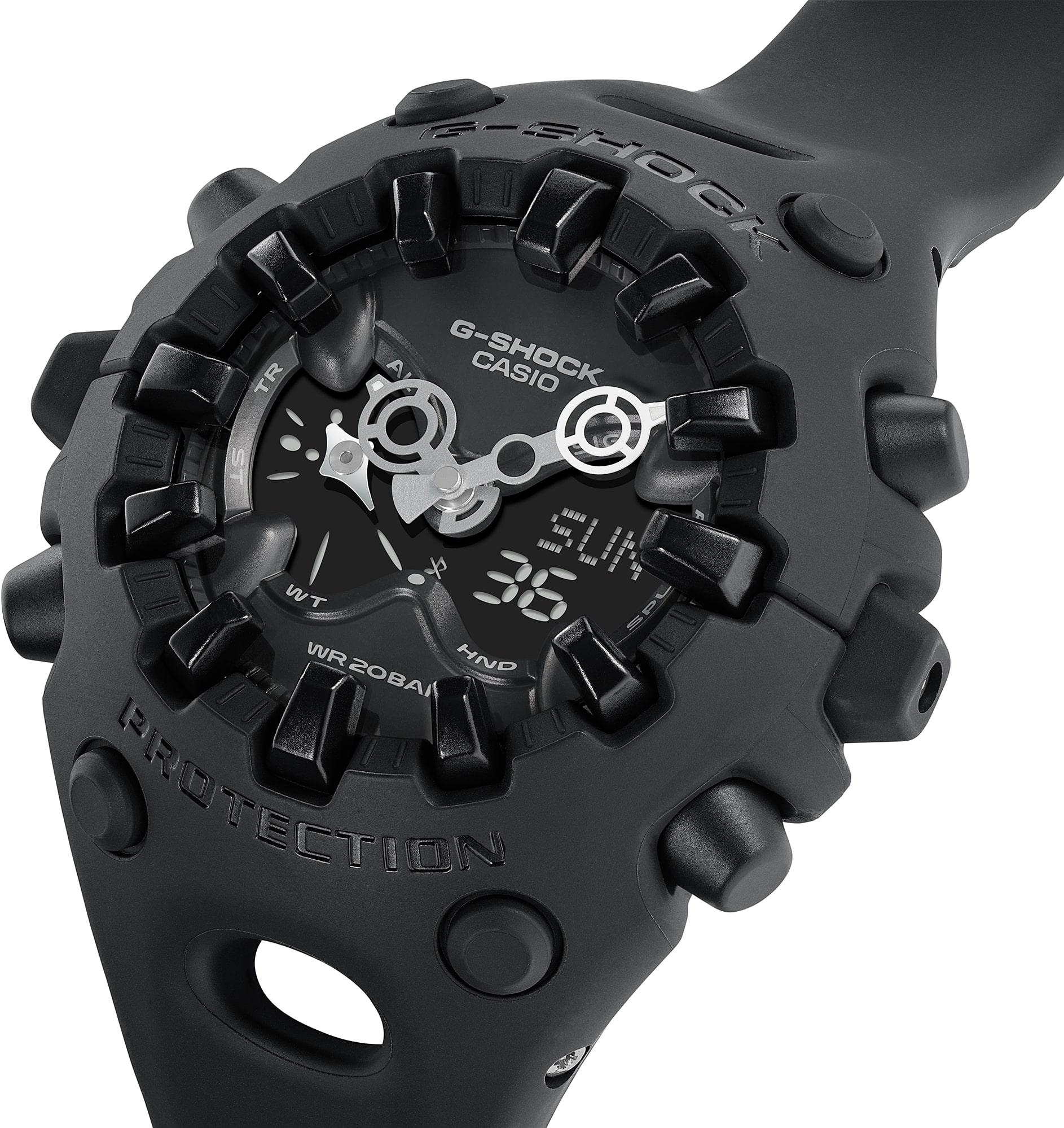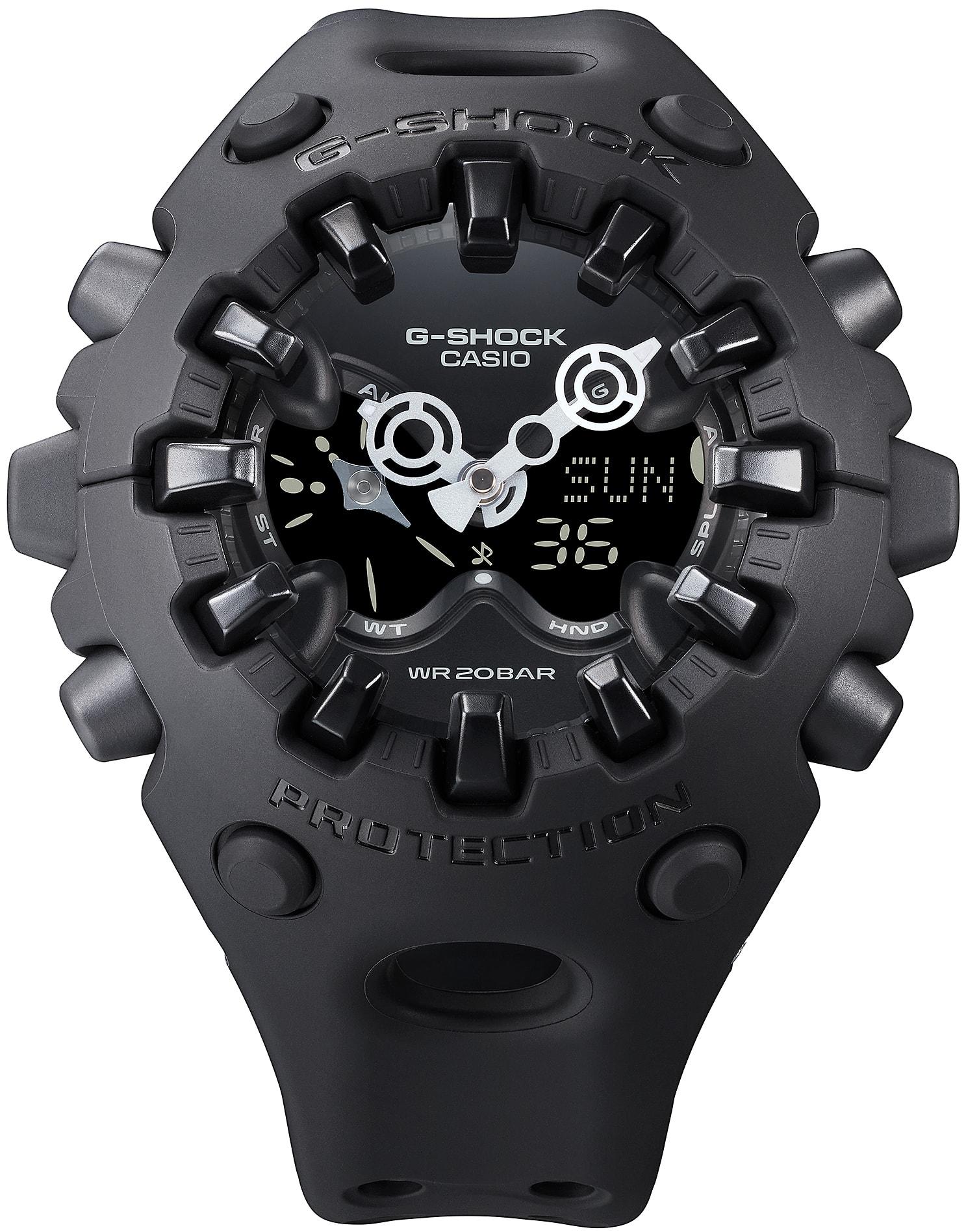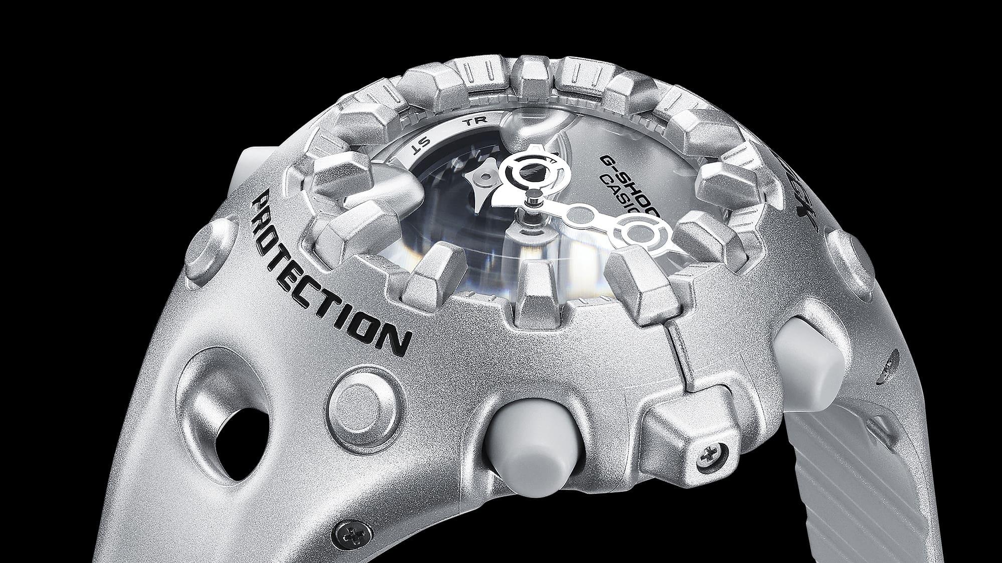 Новинка в серии G-Shock с ярким футуристичным дизайном. Система собственной разработки Casio Shock Release Hand, в которой стрелки не крепятся к валу напрямую, а крепятся с помощью магнитного поля, что позволяет эффективно поглощать и рассеивать удары. Противоударный корпус защищает механизм от ударов и вибрации.