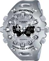 Casio G-Shock GA-V01A-8A с ярким футуристичным дизайном. Система собственной разработки Casio Shock Release Hand, в которой стрелки не крепятся к валу напрямую, а крепятся с помощью магнитного поля, что позволяет эффективно поглощать и рассеивать удары. Противоударный корпус защищает механизм от ударов и вибрации. Двойная подcветка: циферблат и ЖК-дисплеи подсвечиваются светодиодом, благодаря наличию функции задержки, после отпускания кнопки освещение горит еще несколько секунд. Настраиваемое послесвечение 1,5 или 3сек. Цвет подсветки: белый. Необритовое светонакопительное покрытие обеспечивает длительное послесвечение в темноте даже после кратковременного нахождения на свету. 12-ти и 24-х часовой формат времени. Секундомер с двумя точностями показаний: 1/100с (до 1ч) и 1с (после 1ч) и временем измерения 24ч. Секундомер с функцией SPLIT. Таймер обратного отсчета от 1с до 24ч. Мировое время – 48 городов (31 часовой пояс), всемирное координированное время (UTC). Функция включения/отключения летнего времени. Функции отключения/включения звука и перемещения стрелок для беспрепятственного просмотра информации на цифровых дисплеях. 5 ежедневных будильников. Ежечасный сигнал времени. Полностью автоматический календарь (до 2099 года). Стальная задняя крышка крепится на 4-х винтах. Батарейка рассчитана на 10 лет. Ремешок из полимерного материала с классической застежкой.