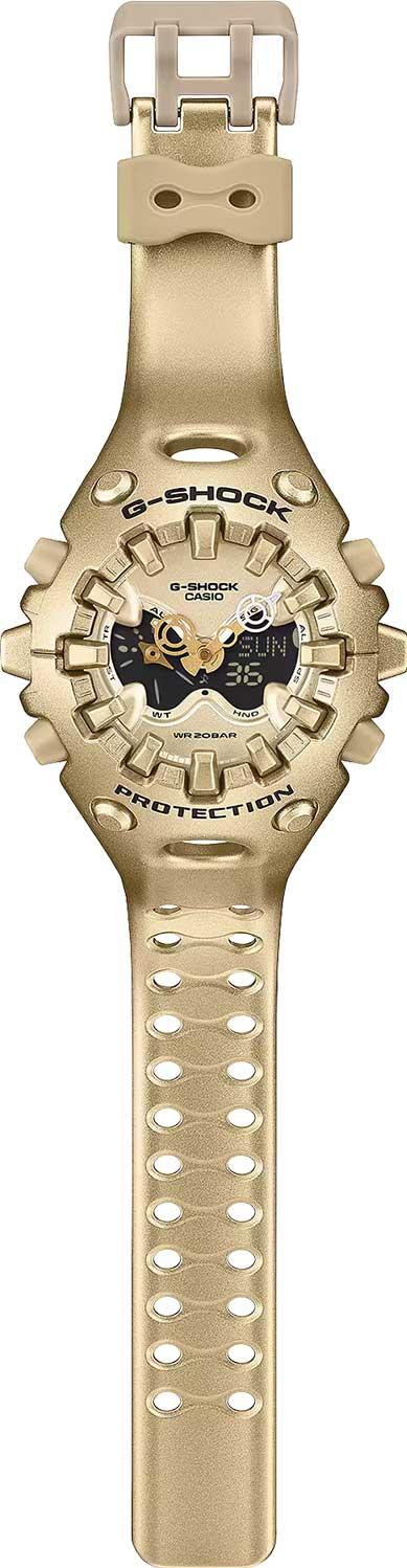 Новинка в серии G-Shock с ярким футуристичным дизайном. Система собственной разработки Casio Shock Release Hand, в которой стрелки не крепятся к валу напрямую, а крепятся с помощью магнитного поля, что позволяет эффективно поглощать и рассеивать удары. Противоударный корпус защищает механизм от ударов и вибрации. Двойная подcветка: циферблат и ЖК-дисплеи подсвечиваются светодиодом, благодаря наличию функции задержки, после отпускания кнопки освещение горит еще несколько секунд. Настраиваемое послесвечение 1,5 или 3сек. Цвет подсветки: белый. Необритовое светонакопительное покрытие обеспечивает длительное послесвечение в темноте даже после кратковременного нахождения на свету.