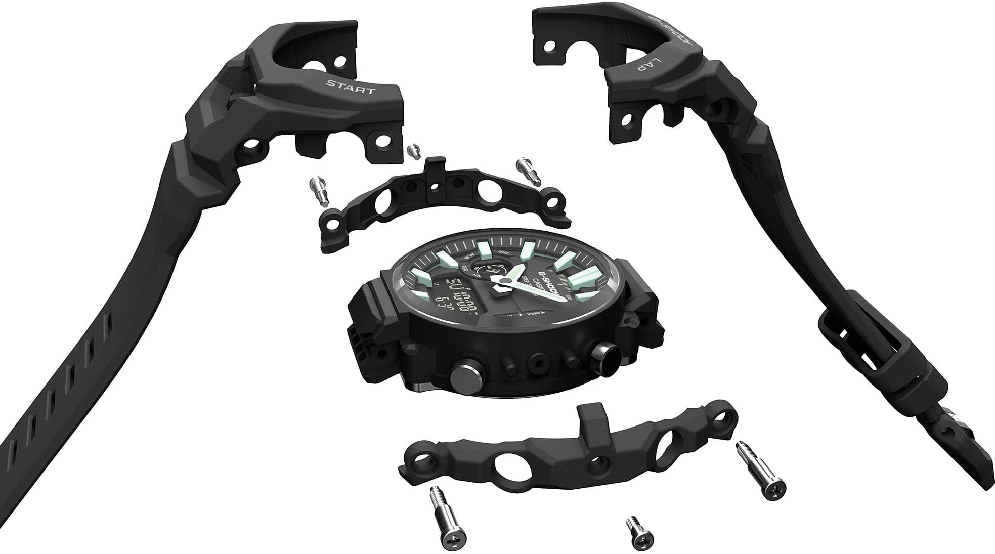 Уникальная конструкция часов включает монолитное исполнение безеля и ремешка из био-смолы для повышенной прочности и экологичности, а также ударопрочный корпус из углепластика. Особого внимания заслуживает революционный дизайн ремешка, разработанный совместно с экспертами в области оригами-инжиниринга - технология складчатой структуры обеспечивает идеальную посадку на запястье и максимальный комфорт во время тренировок.