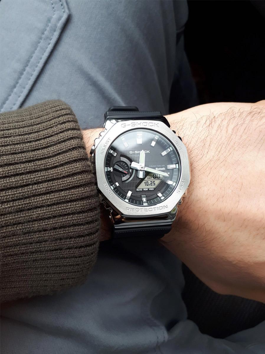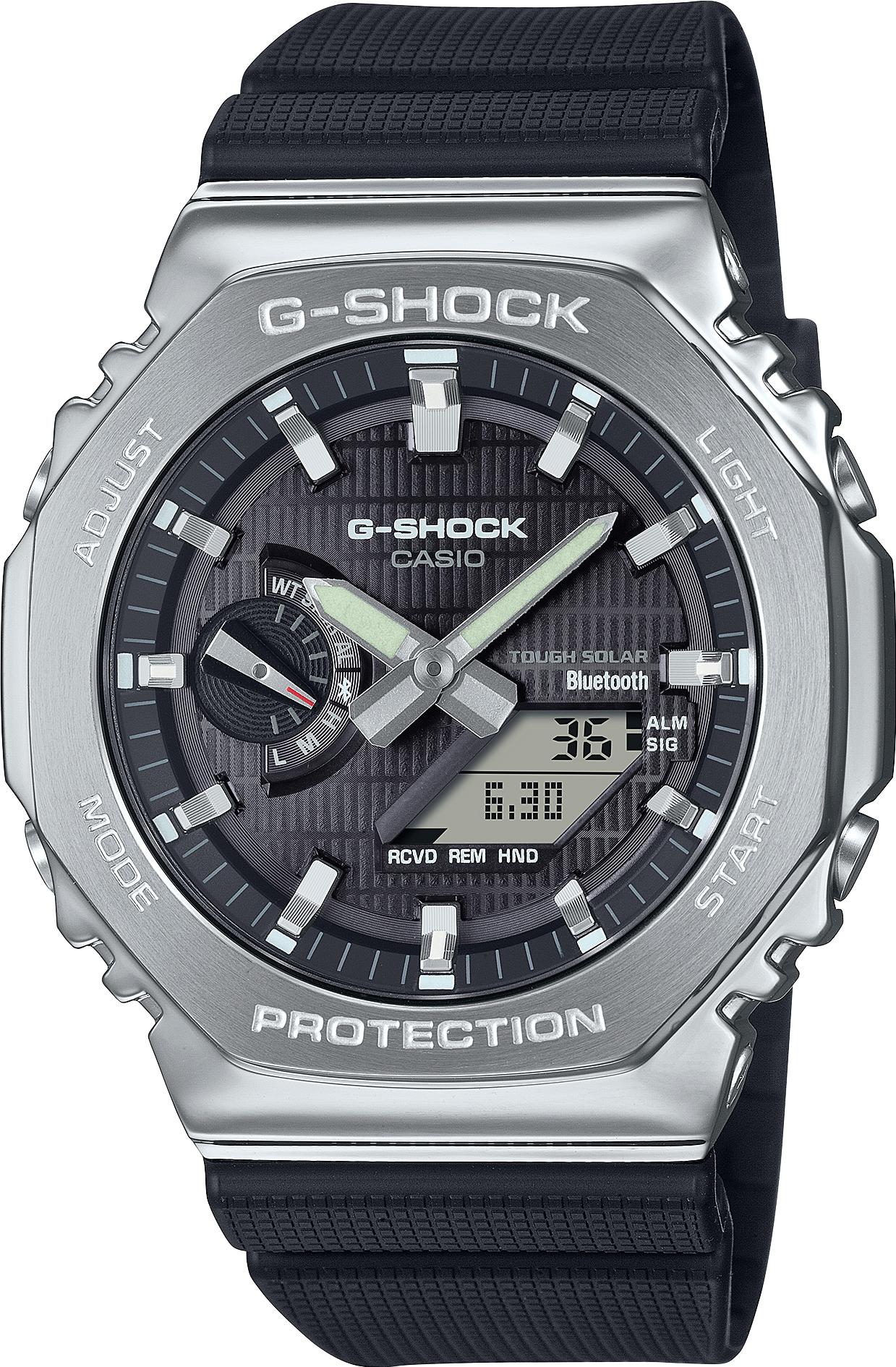 Мужские наручные часы Casio G-Shock GBM-2100-1A. Точный кварцевый механизм с аналого-цифровой индикацией. Полимерный ремешок. Натуральный полимерный материал является идеальным для изготовления ремешка благодаря своей чрезвычайной прочности и гибкости. После настройки автоматический календарь всегда отображает точную дату. Для подсветки дисплея используется светодиод, а так же имеет функцию автоматического включения подсветки, если Вы наклоните часы к своему лицу. Функция Bluetooth позволяет удобно отображать все метрики с часов на экране смартфона, а также выводить на часы уведомления о входящих звонках, сообщениях и имейлах. Функция будильника. Ежечасный сигнал. Функция хронографа. Отображение текущего времени в основных городах и конкретных областях по всему миру. Функция перемещения стрелок. Нажатие на кнопку обеспечит перемещение стрелок в такое положение, которое позволит Вам легко считать информацию с маленьких цифровых дисплеев – например, дату или показатели секундомера. Солнечная батарейка. Солнечная подзаряжающаяся батарейка обеспечивает питание часов для работы. Ударопрочная конструкция часов защищает от ударов и вибрации. Отображение времени возможно в 12-часовом или 24-часовом формате. Браслет из нержавеющей стали. Прочное, устойчивое к царапинам минеральное стекло защищает часы от повреждений. На циферблате отображается текущее число, месяц и день недели. Часы являются водонепроницаемыми до 20 Бар. Цвет циферблата: Серебристый. Цвет корпуса: Черный. Светодиодная подсветка. Высота (с ушками): 49 мм. Толщина: 12 мм. Гарантия: 2 года.