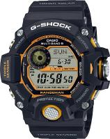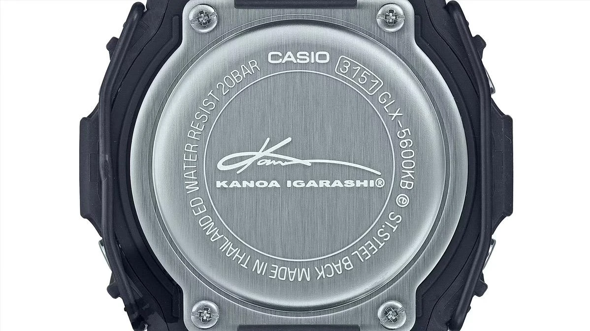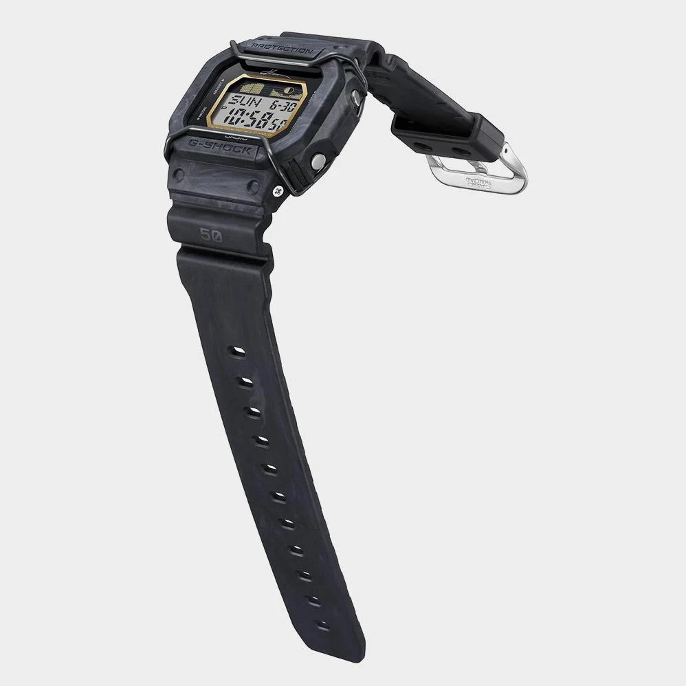 Винтажная модель в новой цветовой гамме корпуса и ремешка понравится поклонникам серфинга. G-Shock G-Lide x Kanoa Igarashi. Модель выпущена совместно с знаменитым японским серфером Каноа Игараси (Kanoa Igarashi), начал заниматься серфингом в три года, а в девять лет стал самым молодым человеком, когда-либо вступавшим в сборную США по серфингу. Корпус и ремешок выполнены из биопластика, который изготавливается из возобновляемых органических ресурсов. Цветовая гамма выполнена в различных оттенках черного цвета по просьбе Каноа. Противоударный корпус защищает механизм от ударов и вибрации. Отличительной чертой модели является проволока на корпусе, которая не только добавляет уникальности, но и служит дополнительной защитой дисплея. Сине-зеленая электролюминесцентная автоподсветка обеспечивает освещение всего циферблата, при наклоне часов в сторону лица для считывания функция автоподсветки обеспечивает автоматическое включение. При активации подсветки на дисплее отображается автограф серфера. Световая индикация сигнала. Типы сигналов: ежедневный, ежемесячный, каждый день определенного месяца, на определенную дату. Отображение возраста и фазы Луны. Графическое отображение сведений о приливах и отливах на заданную дату и время. 12-ти и 24-х часовой формат времени. Секундомер с точностью показаний 1/100с и временем измерения 24ч. SPLIT-хронограф. Таймер обратного отсчета от 1мин до 24ч с автоповтором. Мировое время – 48 городов (29 часовых поясов). Функции включения/отключения летнего времени и включения/отключения звука. Батарея рассчитана на 7 лет. Стальная задняя крышка крепится на 4-х винтах и украшена автографом Каноа. Ремешок с классической застежкой.