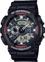 Мужские наручные часы Casio G-Shock GM-110BB-1A. Точный кварцевый механизм с аналого-цифровой индикацией. Полимерный ремешок. Натуральный полимерный материал является идеальным для изготовления ремешка благодаря своей чрезвычайной прочности и гибкости. Часы созданы с защитой от воздействия магнитных полей. После настройки автоматический календарь всегда отображает точную дату. Функция будильника. Функция хронографа. Отображение текущего времени в основных городах и конкретных областях по всему миру. Функция таймера. Таймеры обратного отсчета напомнят Вам о текущих или особенных событиях, издав звуковой сигнал в установленное время. Ударопрочная конструкция часов защищает от ударов и вибрации. Отображение времени возможно в 12-часовом или 24-часовом формате. Полимерный ремешок. Натуральный полимерный материал является идеальным для изготовления ремешка благодаря своей чрезвычайной прочности и гибкости. Прочное, устойчивое к царапинам минеральное стекло защищает часы от повреждений. На циферблате отображается текущее число, месяц и день недели. Часы являются водонепроницаемыми до 20 Бар. Цвет циферблата: Черный. Цвет корпуса: Черный. Светодиодная подсветка. На стрелки и отметки нанесен светонакопительный состав, благодаря этому считывать информацию с циферблата возможно и в темноте. Толщина: 17 мм. Гарантия: 2 года.