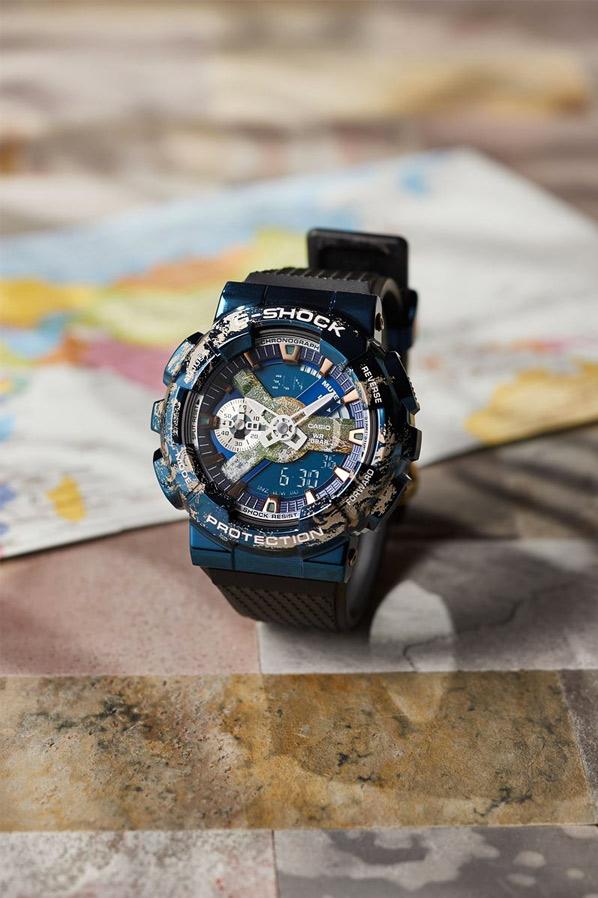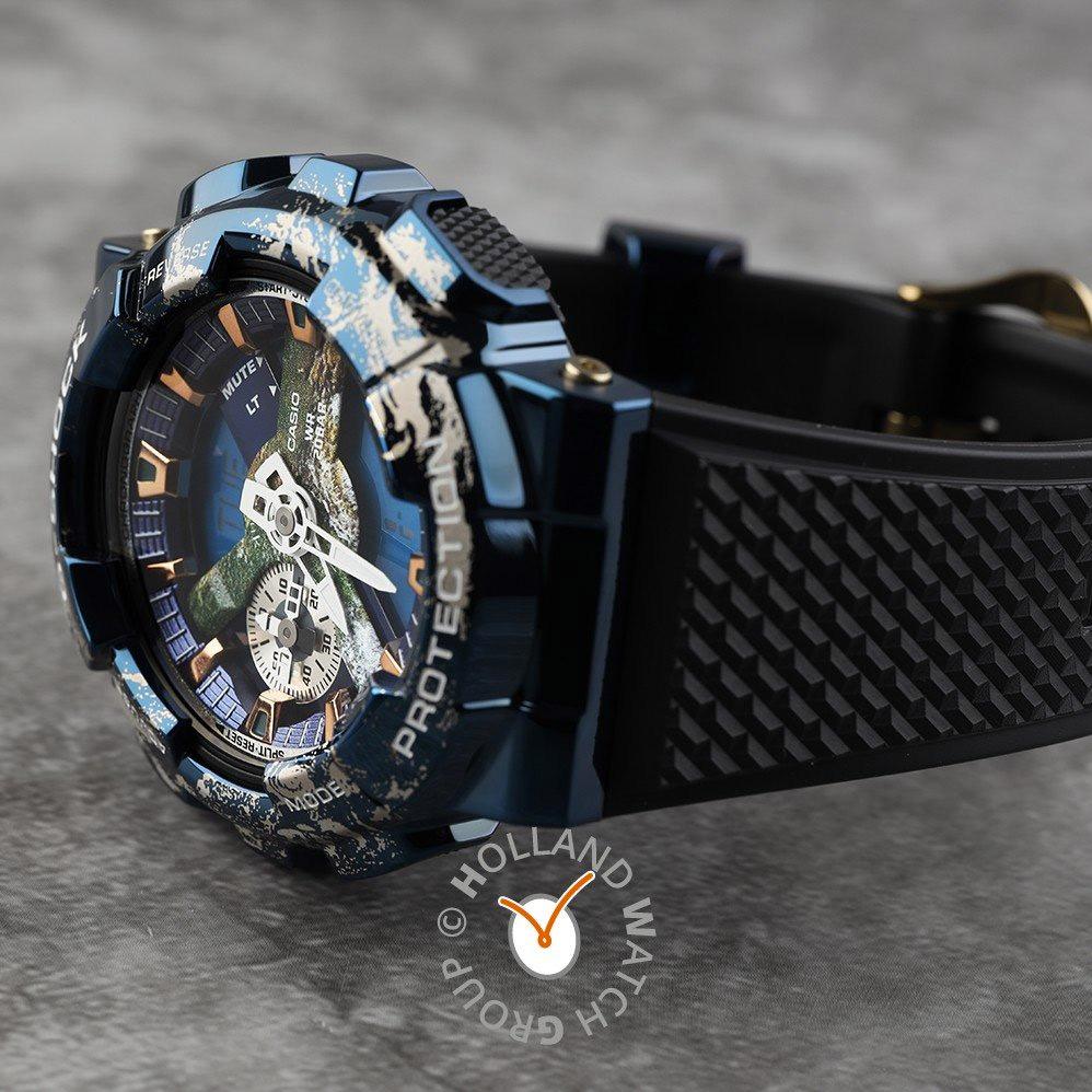 Мужские наручные часы Casio G-Shock GM-110EARTH-1A. Точный кварцевый механизм с аналого-цифровой индикацией. Корпус изготовлен из высококачественной нержавеющей стали 316L с высокими антикоррозийными свойствами. Светодиодная подсветка. На циферблате отображается текущее число, месяц и день недели. Ударопрочная конструкция часов защищает от ударов и вибрации. Часы созданы с защитой от воздействия магнитных полей. Функция хронографа. Функция таймера. Таймеры обратного отсчета напомнят Вам о текущих или особенных событиях, издав звуковой сигнал в установленное время. Функция будильника. Аккумулятор обеспечивает часы достаточным питанием приблизительно на 3 года. Отображение текущего времени в основных городах и конкретных областях по всему миру. После настройки автоматический календарь всегда отображает точную дату. Отображение времени возможно в 12-часовом или 24-часовом формате. Полимерный ремешок. Натуральный полимерный материал является идеальным для изготовления ремешка благодаря своей чрезвычайной прочности и гибкости. Прочное, устойчивое к царапинам минеральное стекло защищает часы от повреждений. Часы являются водонепроницаемыми до 20 Бар. Цвет корпуса: Разноцветный. Цвет циферблата: Синий. Ширина (с заводной головкой): 52мм. Толщина: 17мм. Гарантия: 2 года. Другие наименования модели: GM-110EARTH-1AER.