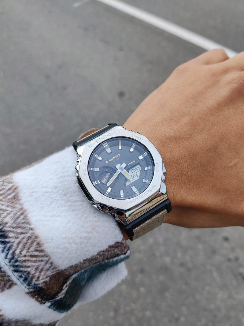 Мужские наручные часы Casio G-Shock GM-2100C-5A. Точный кварцевый механизм с аналого-цифровой индикацией. Корпус изготовлен из высококачественной нержавеющей стали 316L с высокими антикоррозийными свойствами. Светодиодная подсветка. На циферблате отображается текущее число, месяц и день недели. Ударопрочная конструкция часов защищает от ударов и вибрации. Функция хронографа. Функция таймера. Таймеры обратного отсчета напомнят Вам о текущих или особенных событиях, издав звуковой сигнал в установленное время. Функция будильника. Аккумулятор обеспечивает часы достаточным питанием приблизительно на 3 года. Отображение текущего времени в основных городах и конкретных областях по всему миру. После настройки автоматический календарь всегда отображает точную дату. Отображение времени возможно в 12-часовом или 24-часовом формате. Текстильный ремешок. Прочное, устойчивое к царапинам минеральное стекло защищает часы от повреждений. Часы являются водонепроницаемыми до 20 Бар. Цвет корпуса: Серебристый. Цвет циферблата: Черный. Ширина (с заводной головкой): 49мм. Толщина: 12мм. Гарантия: 2 года. Другие наименования модели: GM-2100C-5AER.
